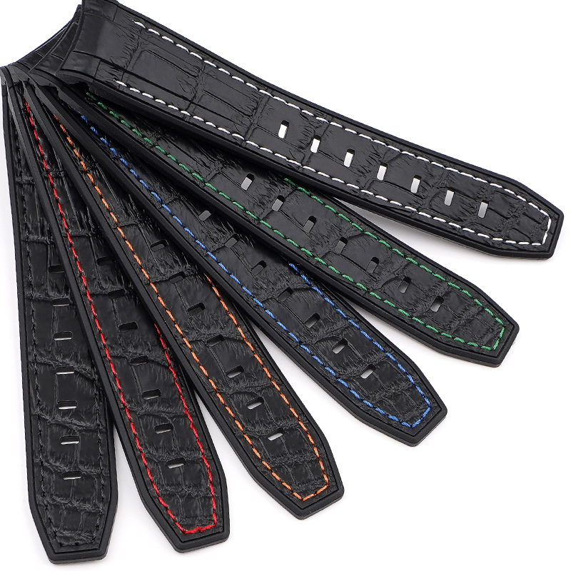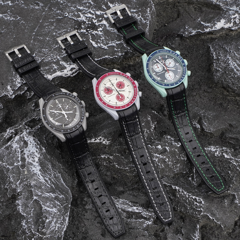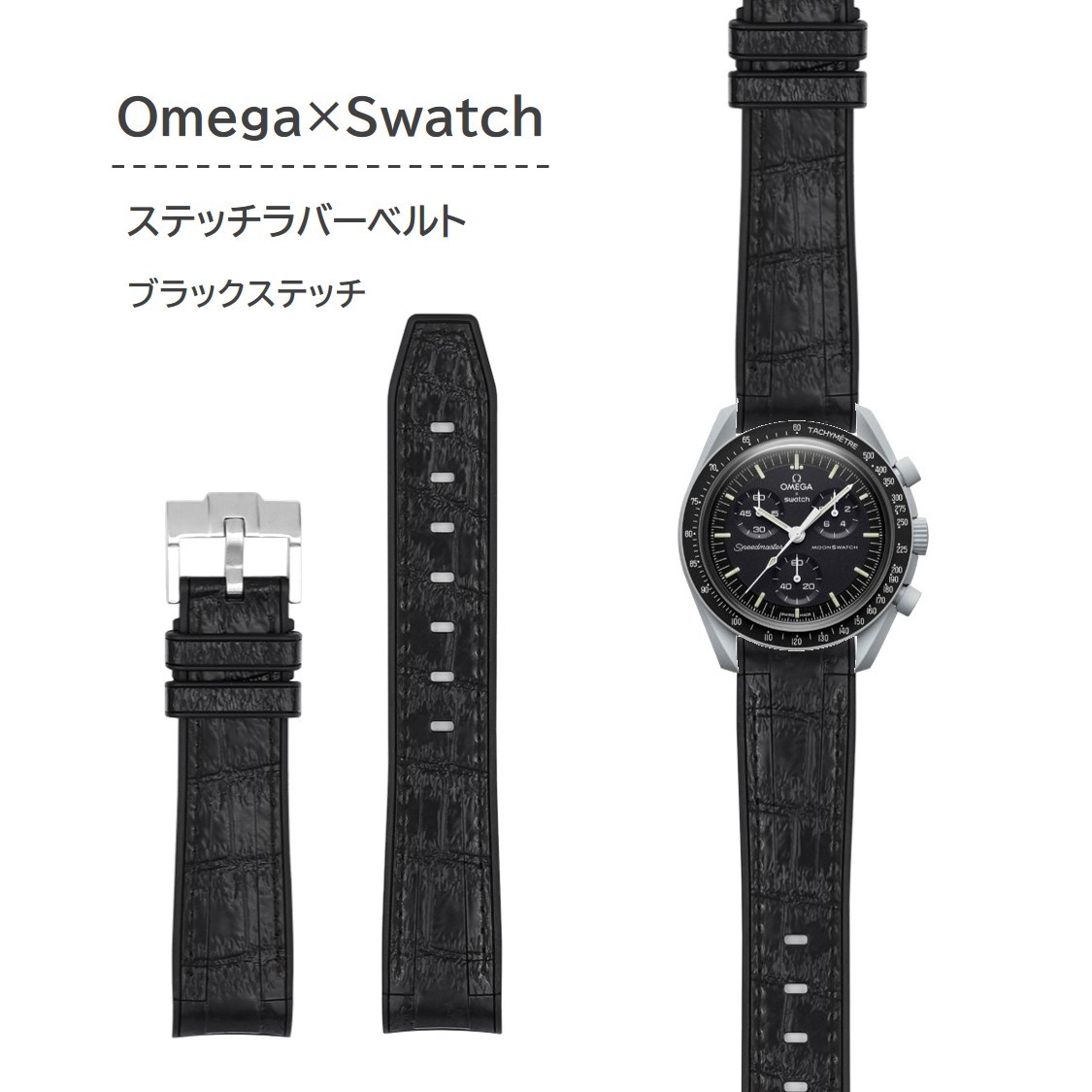Omega×Swatch用 クロコ型押しラバーベルト ブラックステッチ