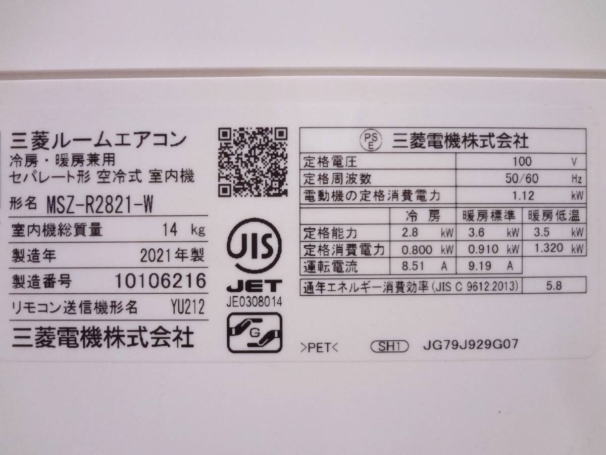 ◆三菱電機 エアコン (10畳・単相100V) 霧ヶ峰 MSZ-R2821-W ◆仕様 ・カラー:ホワイト(W) ・外形寸法(高さ×幅×奥行/mm): 室内機 338×799×255、室外機 538×699×249 ・質量(kg):室内機 8.5、室外機 20.5 ・能力:冷房 2.8kW 8~12畳 /暖房 3.6kW 8~10畳 ・消費電力:冷房 800W/暖房 910W ・電源:単相100V ・2021年製 ◆取り外しまで動作問題ありませんでした。 ◆禁煙環境で、フィルター・ファン含め内部もおおむね綺麗です。 ◆取り外しは業者にて行っており、ポンプダウンにてガスは室外機に回収しています。 ◆配管類やドレンホースは付属致しません。 ◆取り付け時にビス・ボルト・ガス等が不足の時はご購入者様でご準備をお願いします。 ◆USED品ですので多少の傷・スレ・汚れ等はご了承下さい。 ◆メーカー製品サイト |