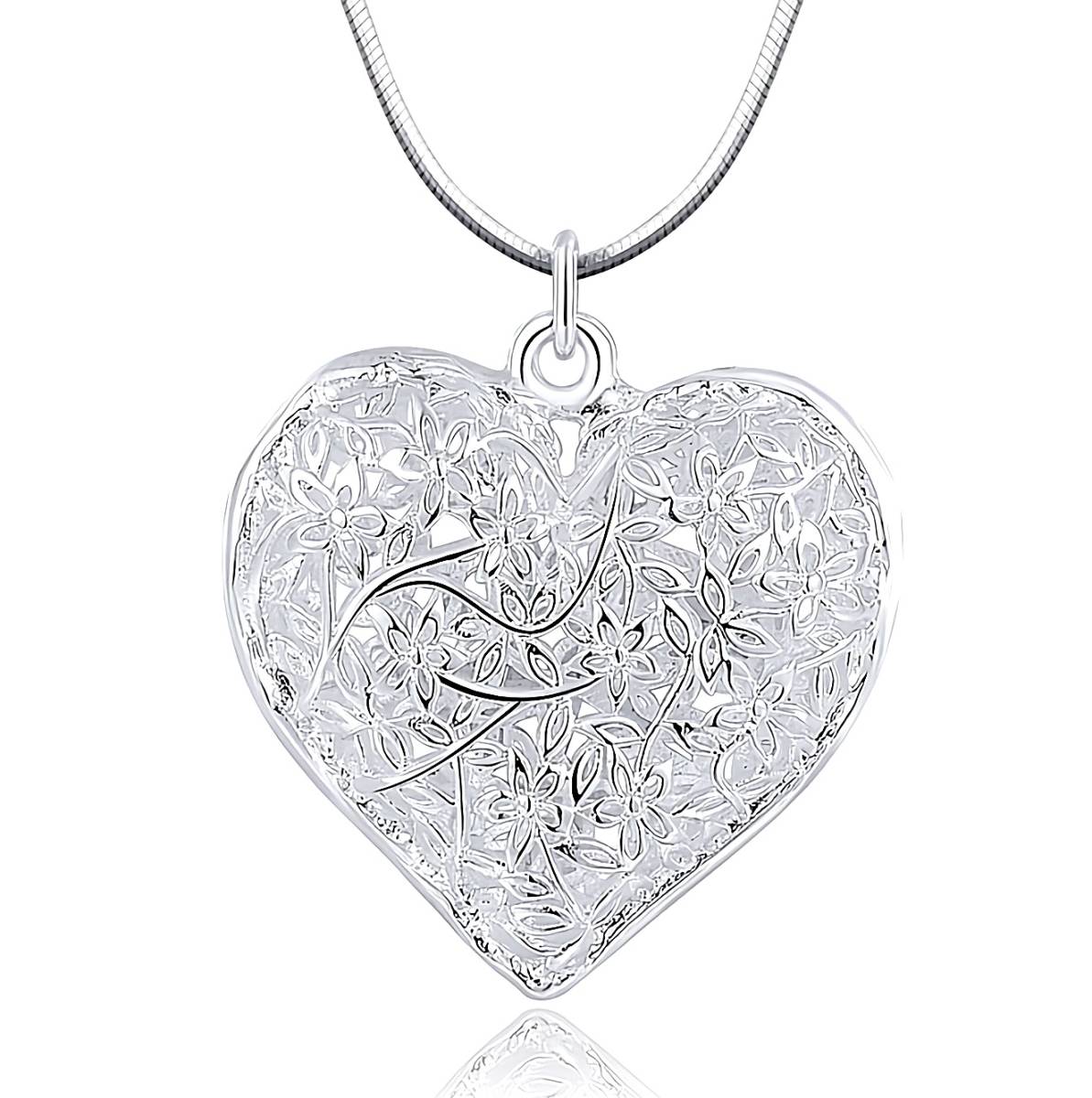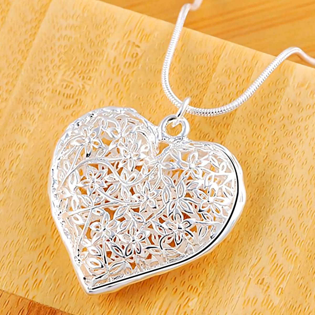 新品★送料無料★白銀の華 透かしハート蔦おしゃれ プラチナ仕上925シルバーネックレス誕生日プレゼント旅行連休秋祭冬ギフト国内発送