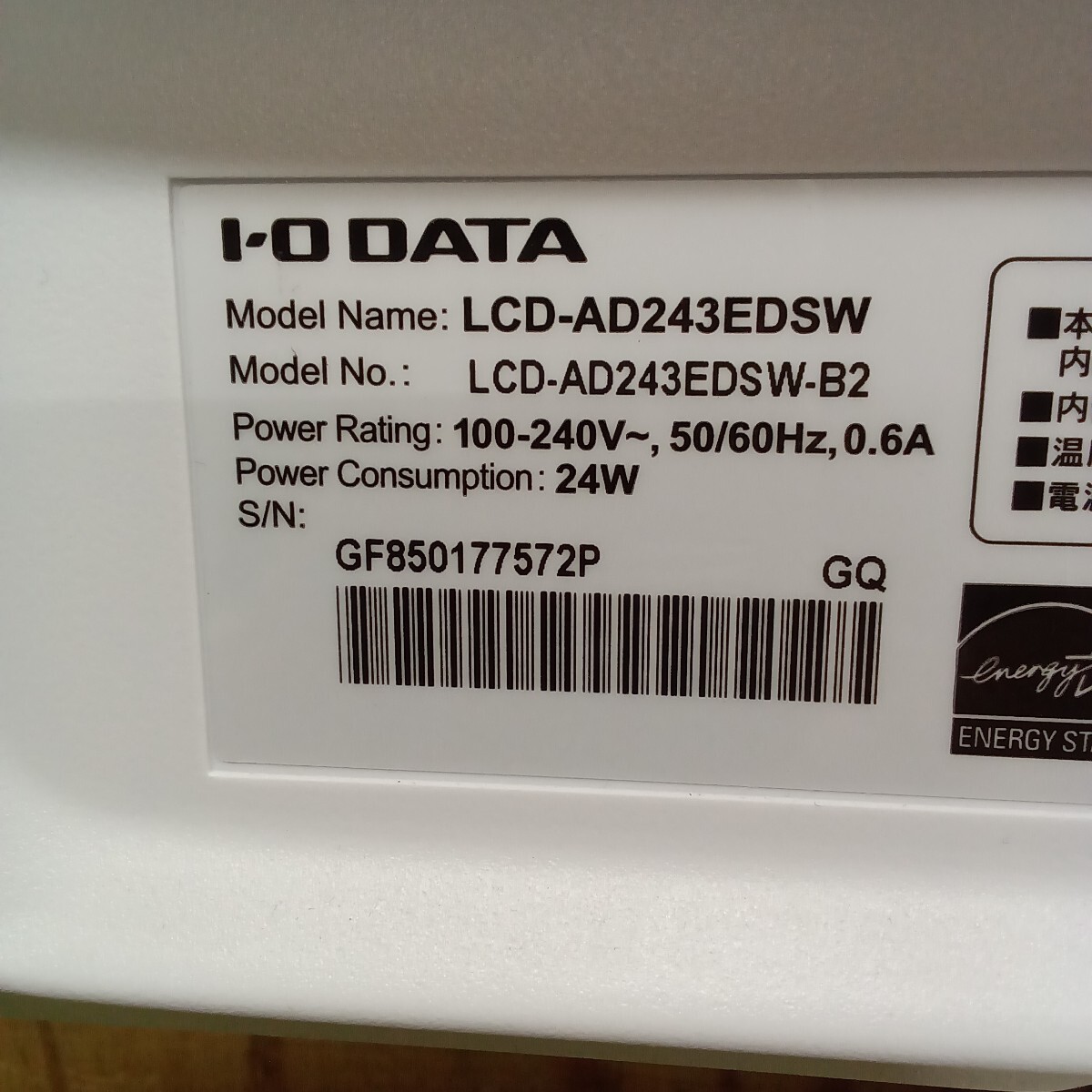 23.8インチ 液晶モニター I-O DATA LCD-AD243EDSW ⑨