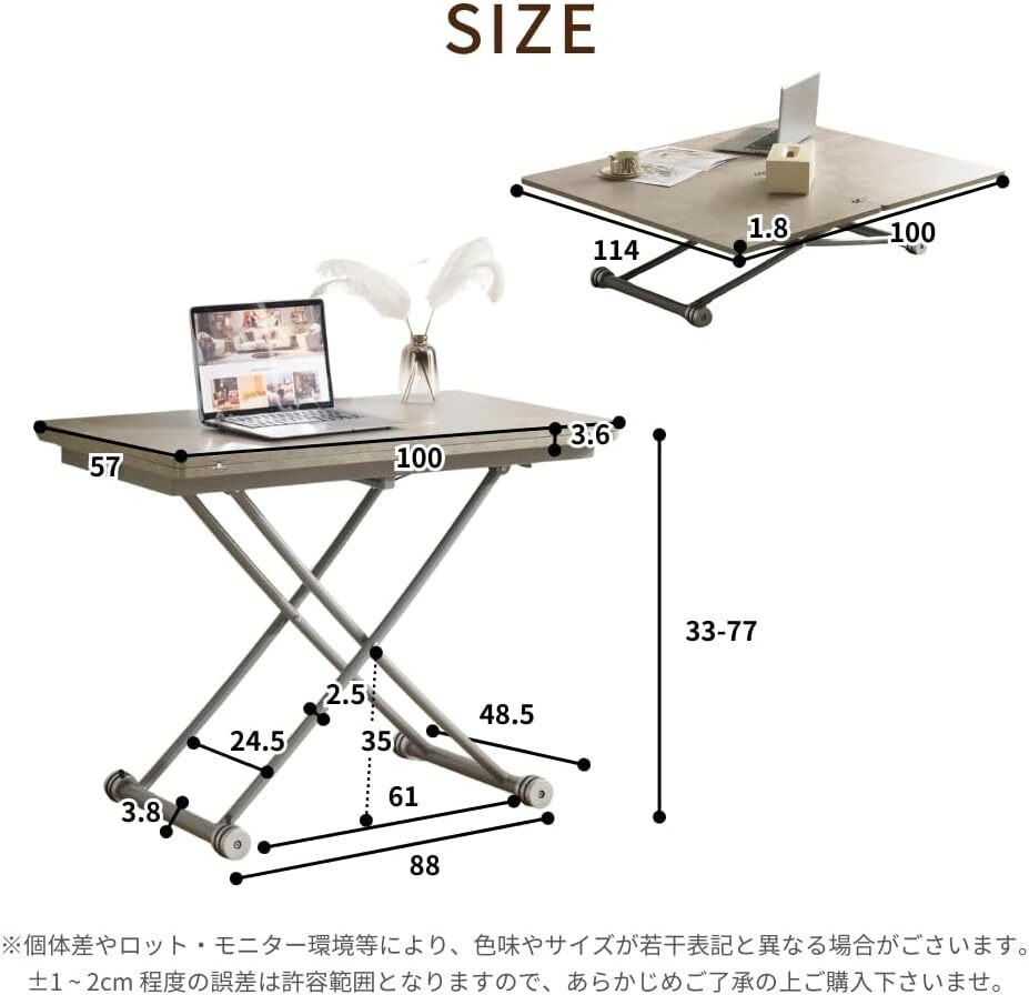 • 【ゆったり使える広々天板】天板サイズは約100×50〜100cmとたっぷり広く、作業スペースとしても食卓としても大活躍。ノートパソコンや書類はもちろん、飲み物やお菓子、ちょっとしたインテリア小物までゆったり置けて、テーブルの上がごちゃつきにくいのも嬉しいポイント。テレワーク、読書、来客時のおもてなしなど、さまざまなシーンで使いやすいサイズ感です。