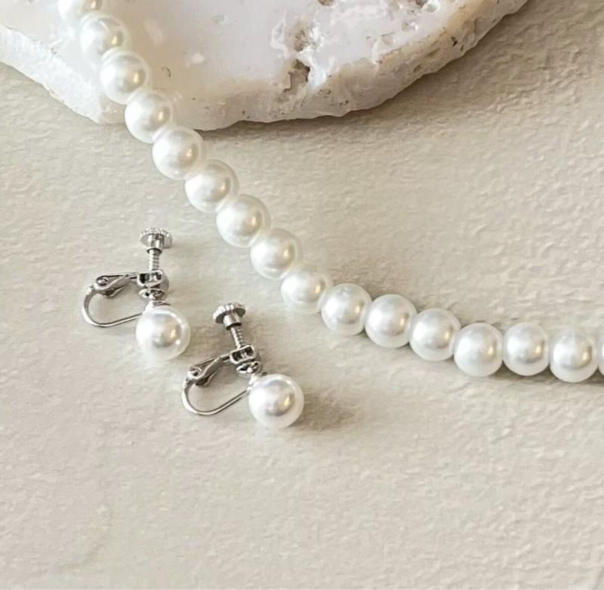シンプルで上品なパールネックレスとイヤリングのセットです♪