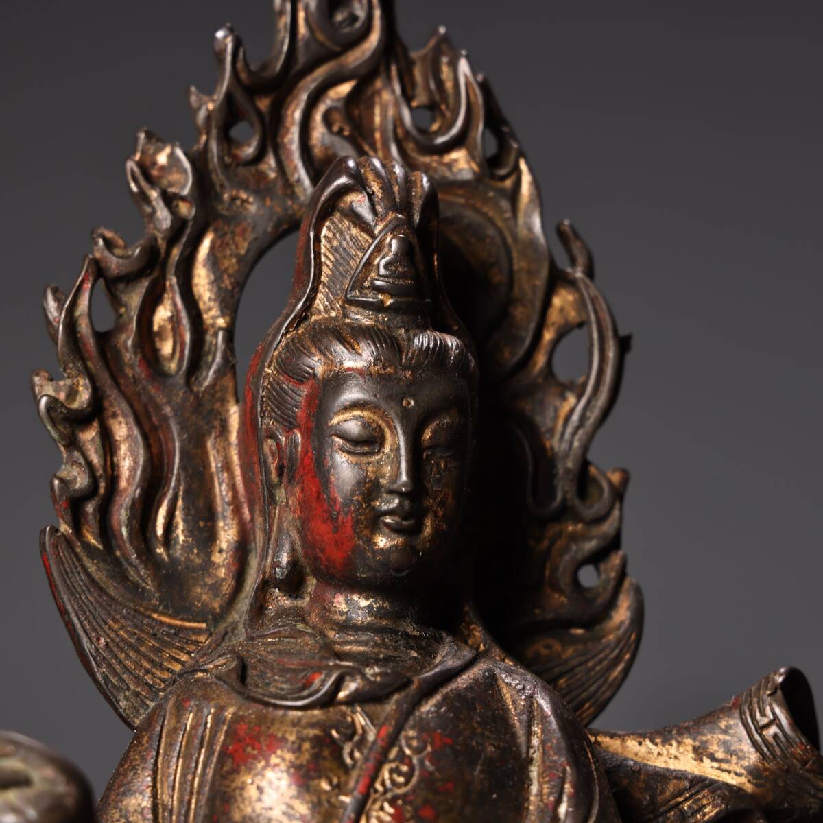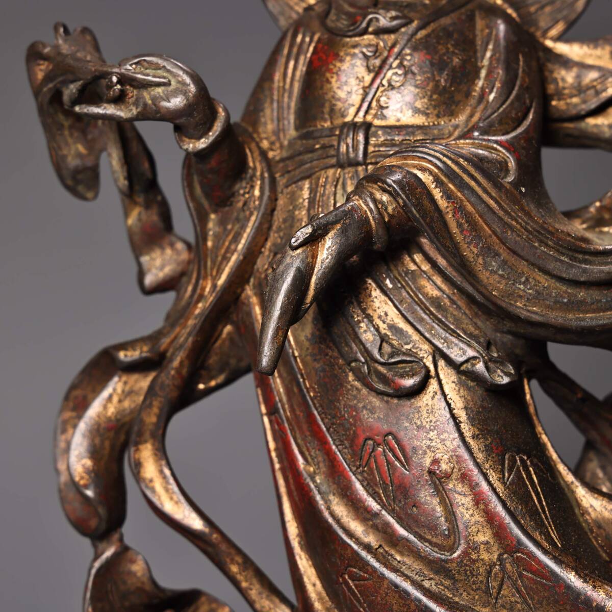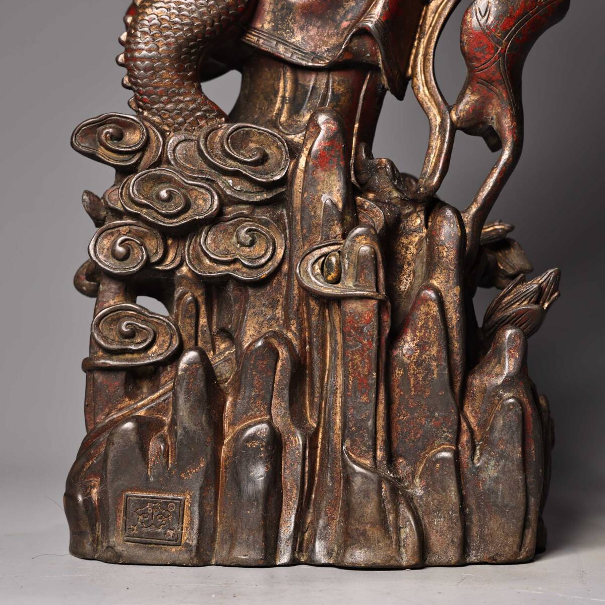 人間国宝9KH9985 中国骨董 銅製品 【純銅製の高浮き彫りの立龍観音菩薩像】 中国古美術 置物 工芸品 旧蔵 珍品 工芸品
