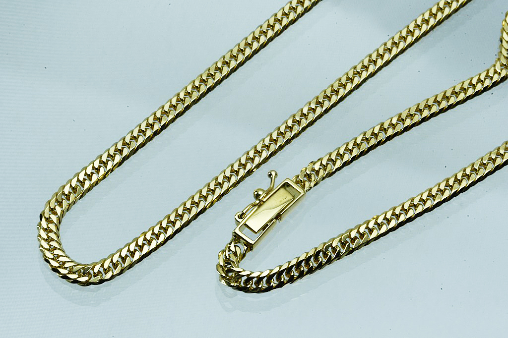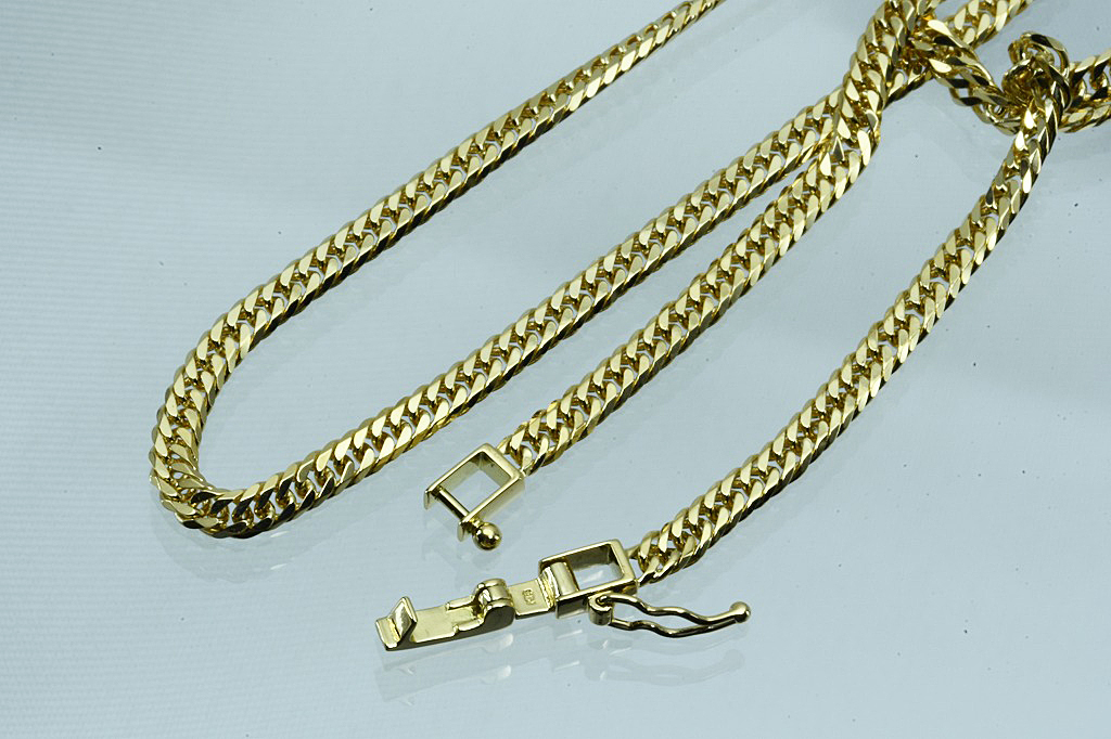 K18ネックレス 喜平 6面 12.8g 50cm 中折れ金具 中古品 の品物となります。カットは片面6面で、1つの喜平の輪に3つの輪が入っているトリプルとなります。金具は丈夫な中折れ金具で、耐久性があります。長さは約50cmと長めなので、トップを通して使用されても大丈夫です。