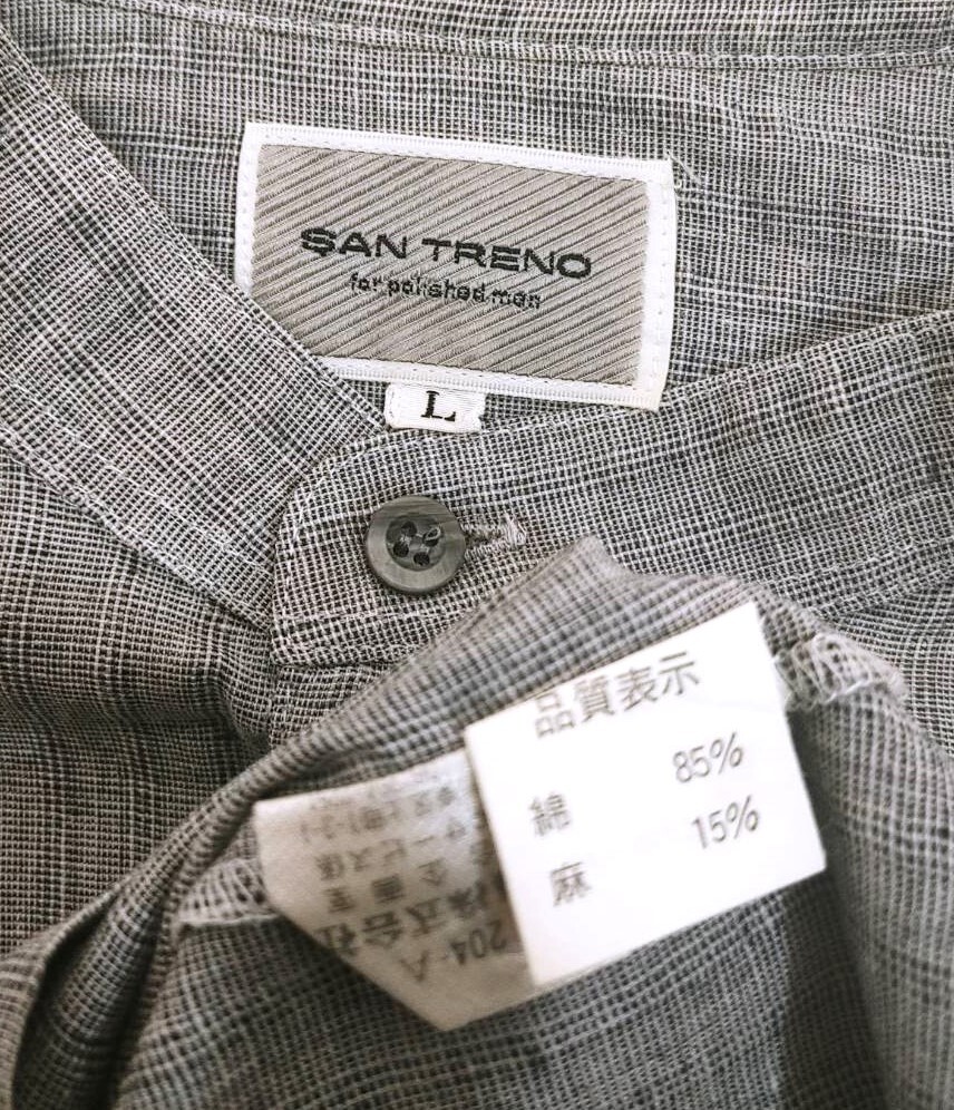 美品サントレノSANTRENOメンズ半袖シャツLグレー