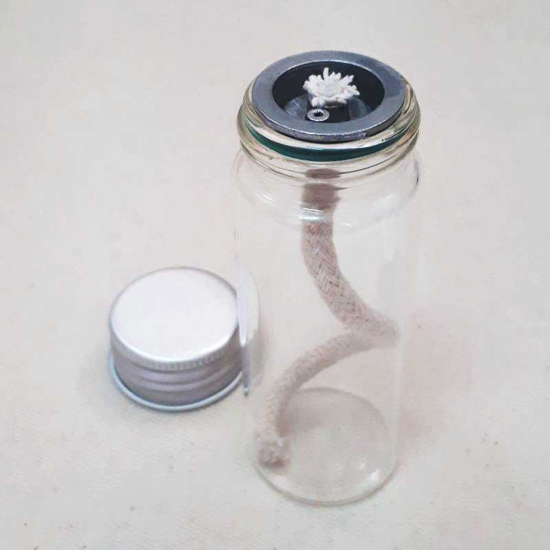 また、透明ガラスボトルを使用し燃料の確認が容易に行うことができることや、連続で7~8時間、調整により9時間程度燃焼するなど、キャンドルランタン本来の性能を損ないません。
