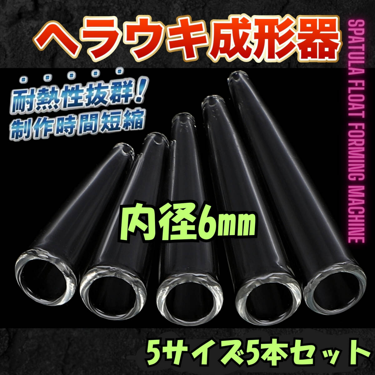 内径6mm5本セット 絞り寸法35.40.45.50.55mm ヘラウキ成形器 耐熱ガラス カヤウキ ヘラブナ ガラス管 成型器 浮き自作 Midorino