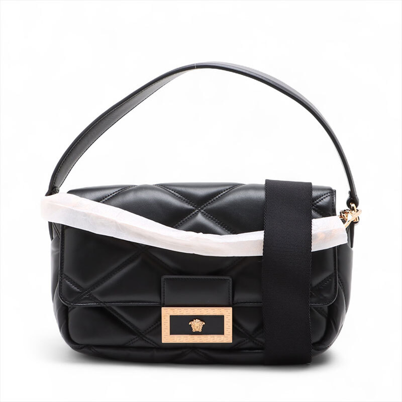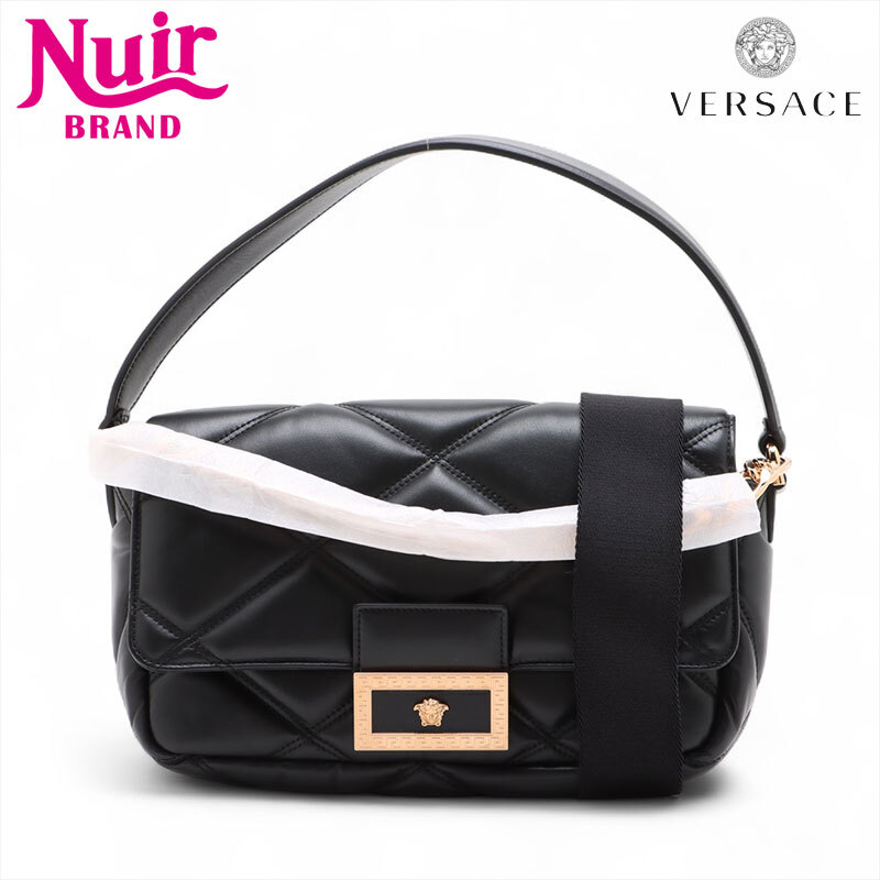 ヴェルサーチ VERSACE ショルダーバッグ レザー グレカ フレーム マテラッセ チェーン パデット ブラック
