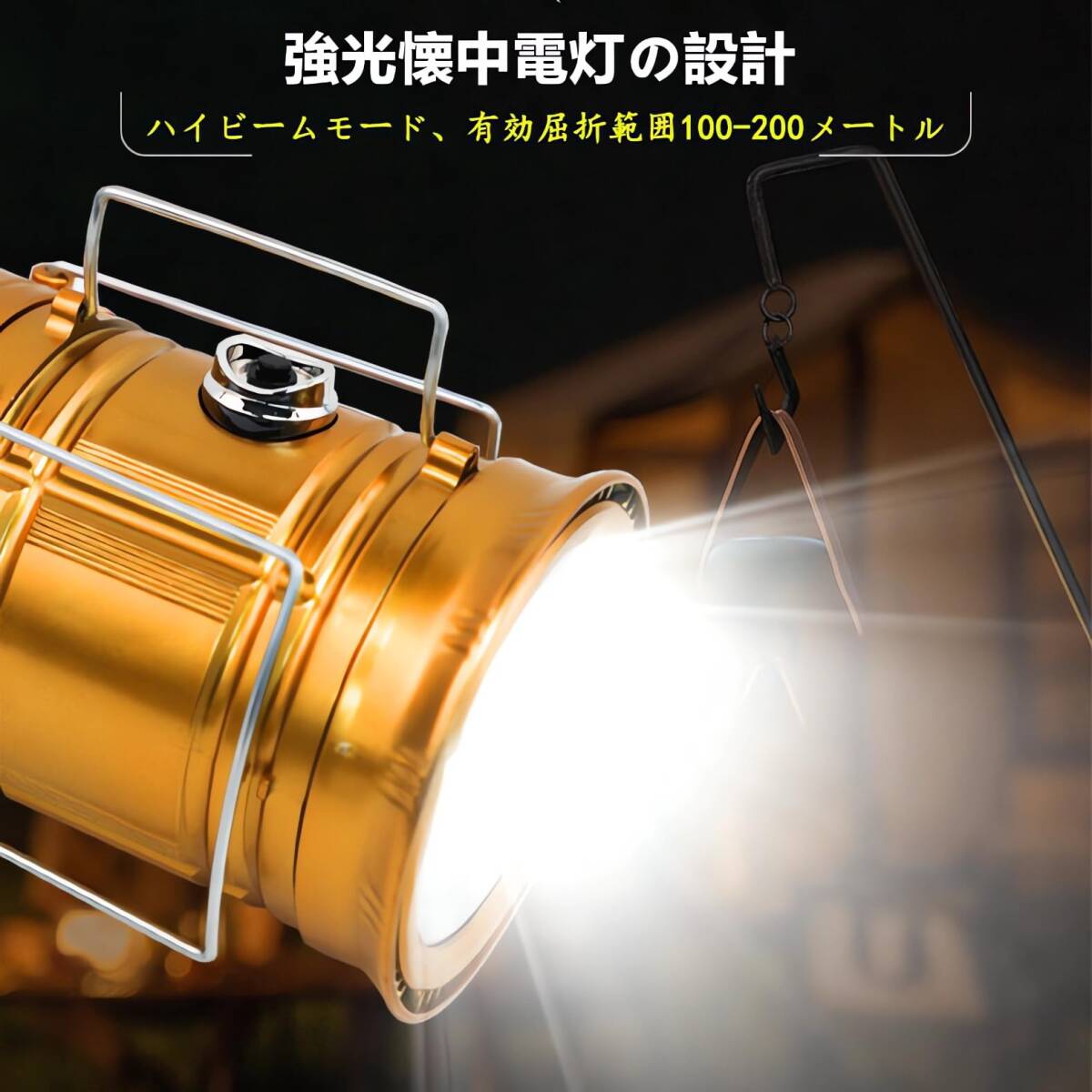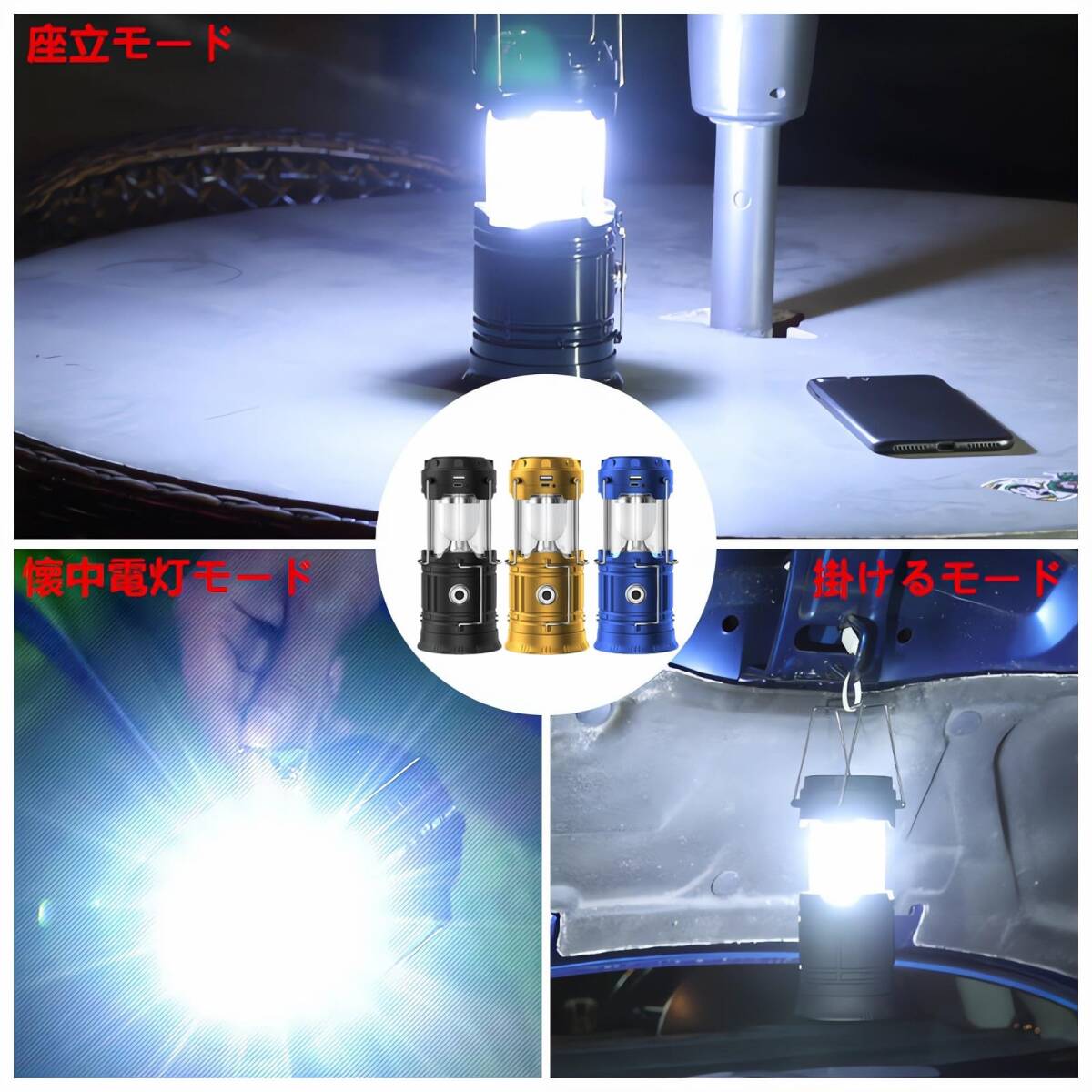 防水多機能ソーラーライト ソーラー式伸縮ランタン 高輝度LEDライト USB充電 折り畳み式 携帯型 防水 軽量 吊り下げデザイン