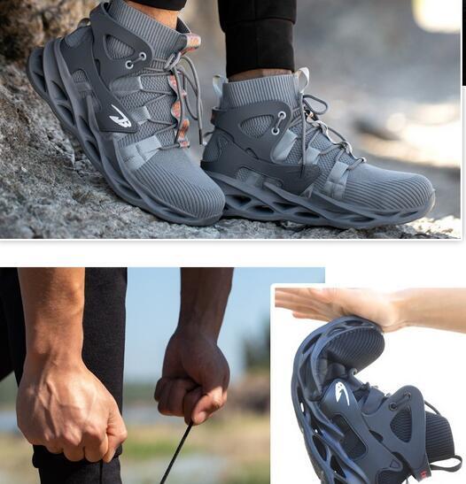 【通気性抜群】安全ブーツのアッパーは通気の編み物を採用する、通気 性が抜群です。それに空気循環する特殊構造で、靴内の足ムレを軽減し 快適です。履き心がいいです。