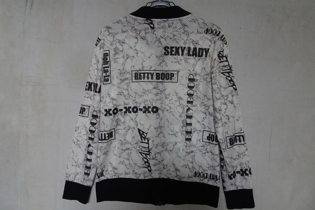 BETTY BOOP/ベティブープ/ブルゾン/ジャンパー/ライトアウター/メッシュ素材/前ジップアップ/文字プリント/白/ホワイト/Mサイズ(9/25R7)