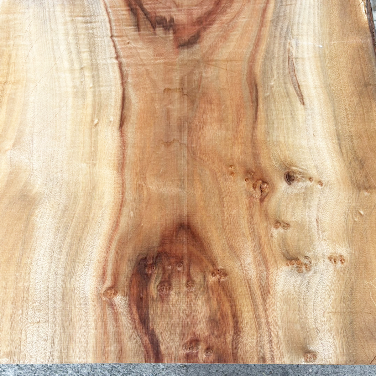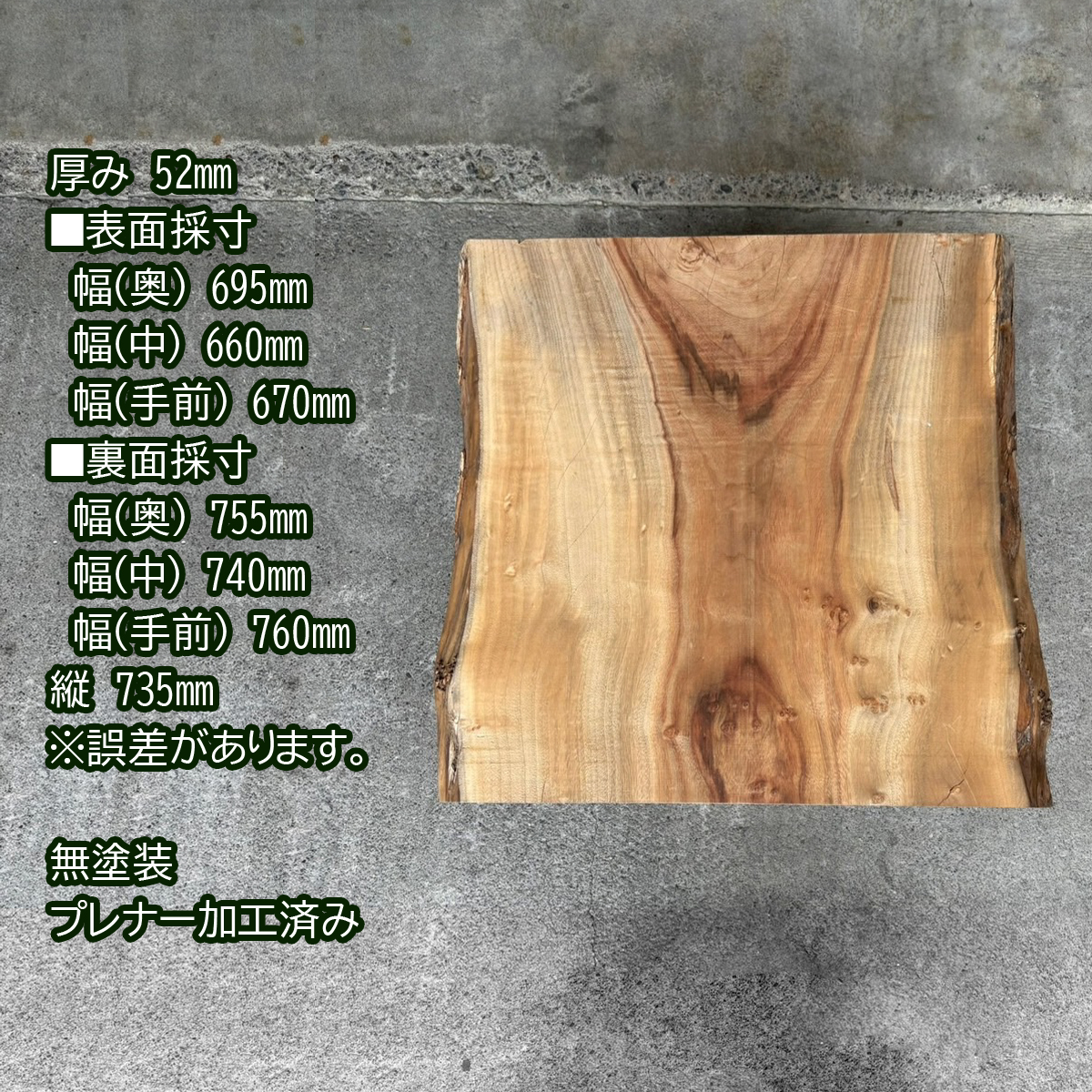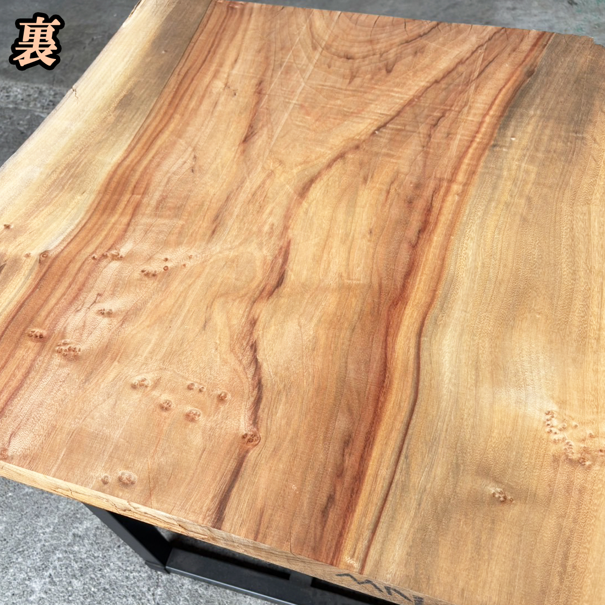 | 【商品説明】 | 樹種は楠(クス)、無垢材です。 瘤杢(コブモク)が入った希少価値のある、 自然が作り出した独特の形が美しい一枚です。 サイドテーブルに如何でしょうか? 楠(クス)はいい香りがします。 【芳香】の花言葉を持つ楠(クス)は、 清々しい香りと、複雑に色味が混ざりあう様が特徴です。 その特徴的な香りは、防虫・消臭・リラックス効果もあります。 無塗装・プレナー加工済みです。 小さいヒビがあります。 写真から確認下さい。 脚は付属しませんのでご注意ください。 |
