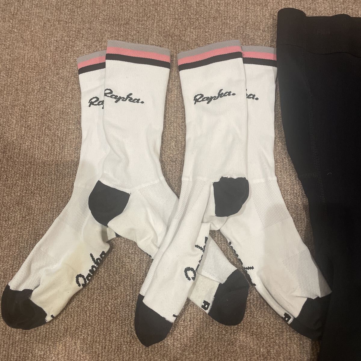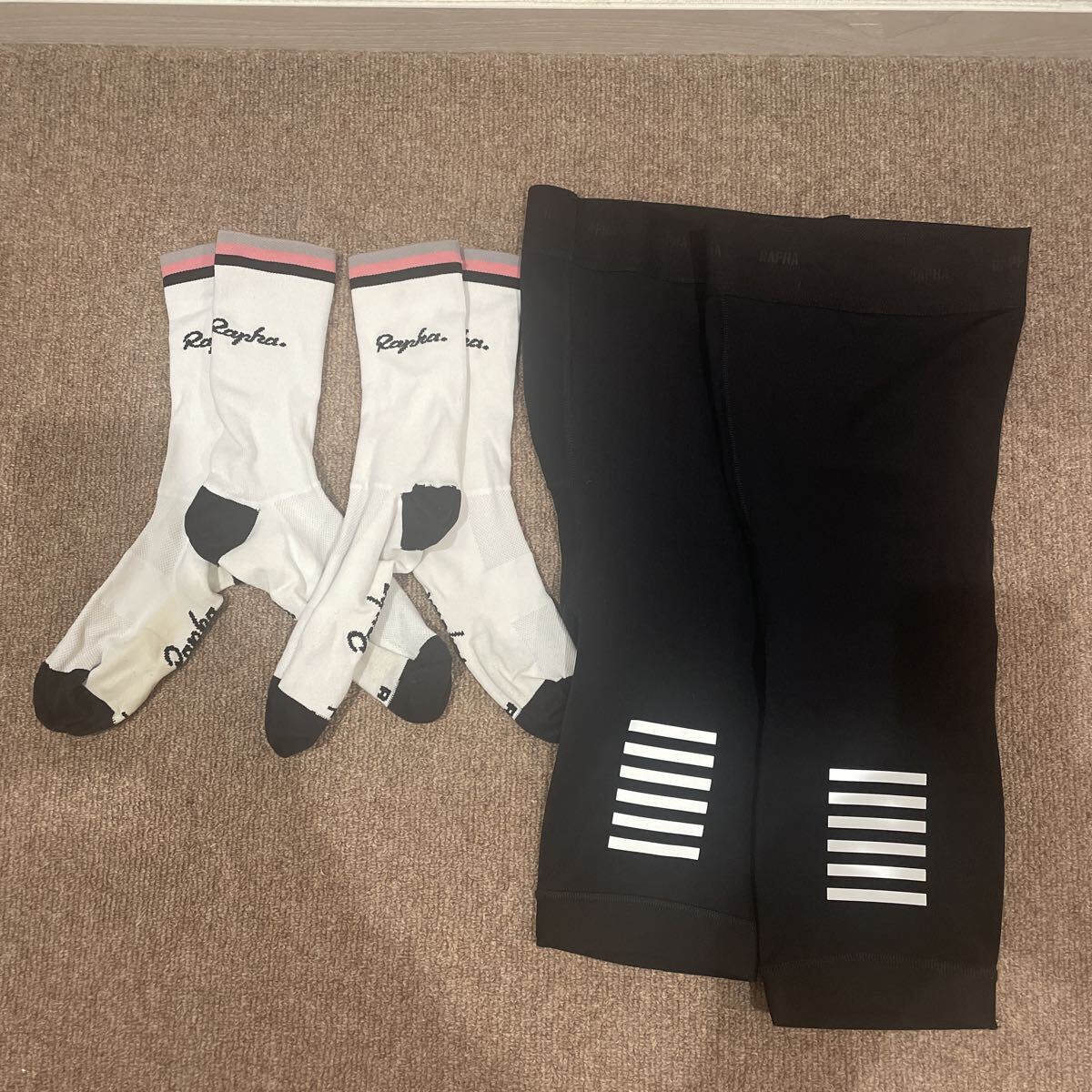raphaプロチームニウォーマー 一度だけ使用 断捨離出品 ノークレームノーリターンでお願いします オマケ 使用感あるraphaソックスサイズL 2足