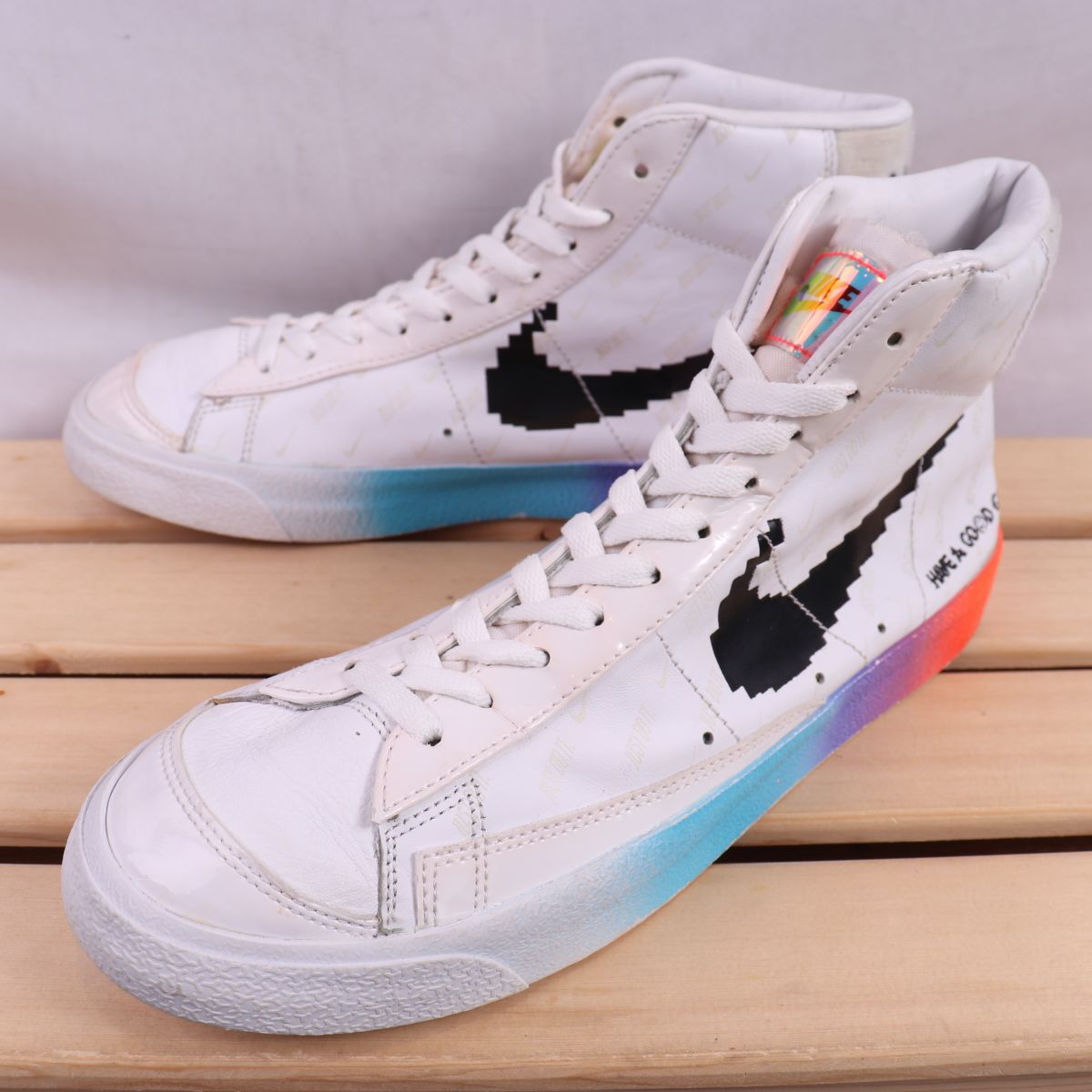 z2213 ナイキ ブレーザー ミッド US9 27.0cm/白 ホワイト 黒 ブラック マルチカラー NIKE BLAZER MID ブレザー メンズ スニーカー 中古