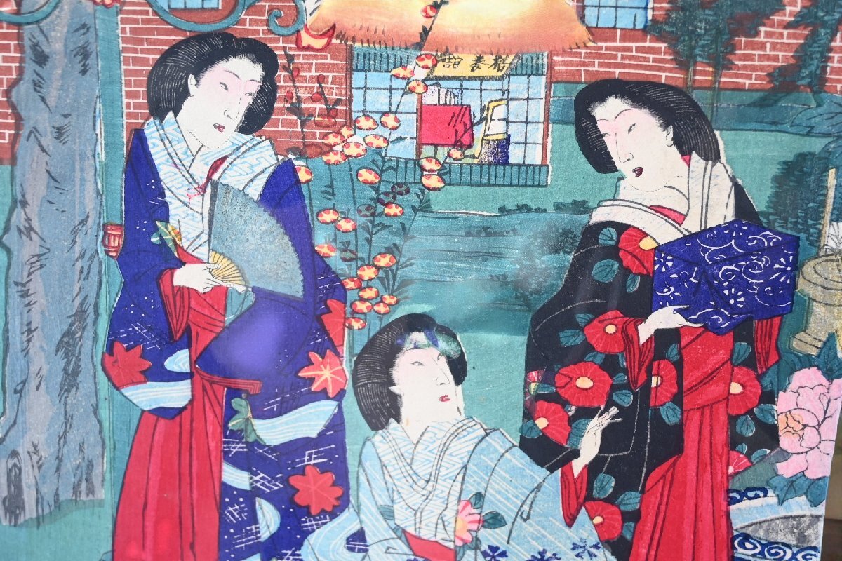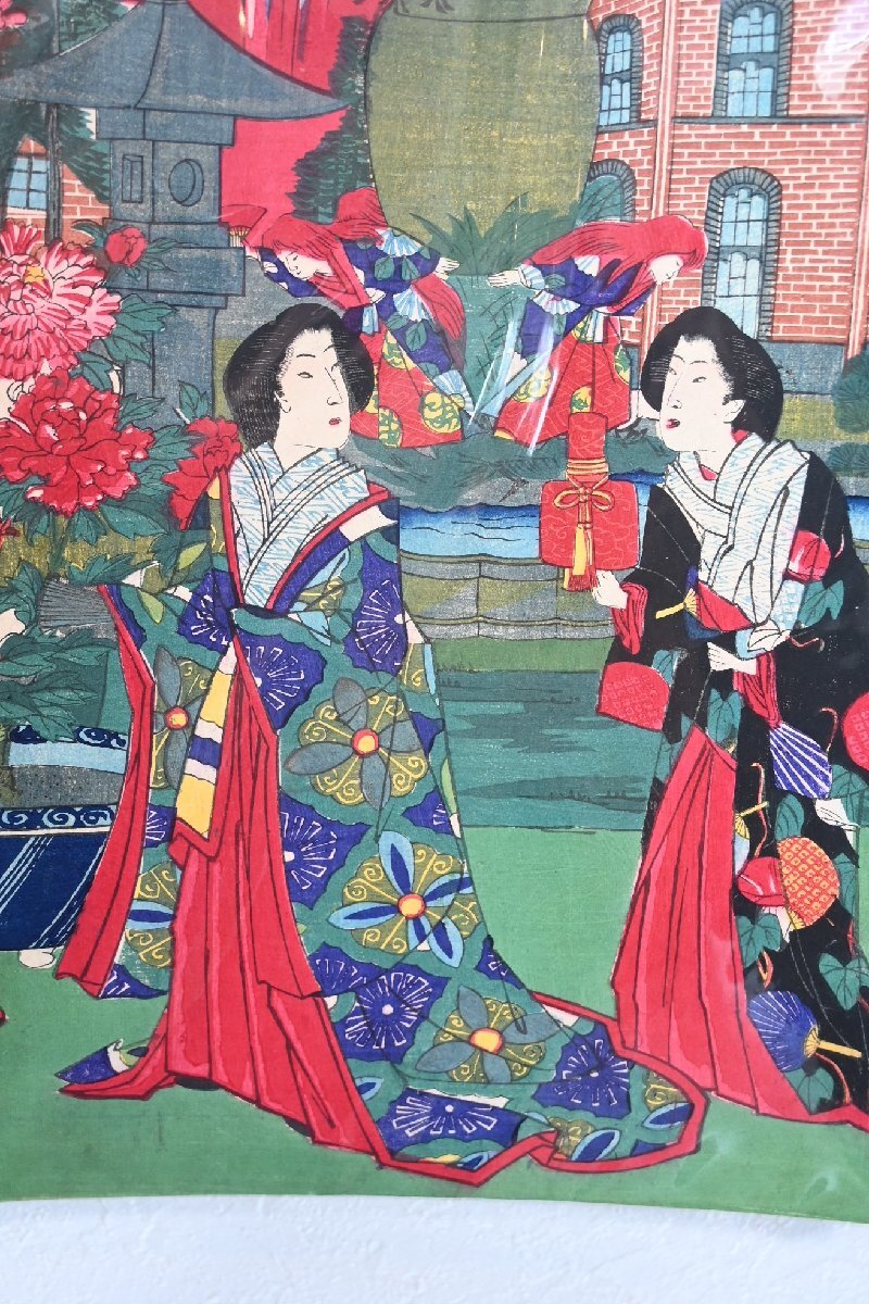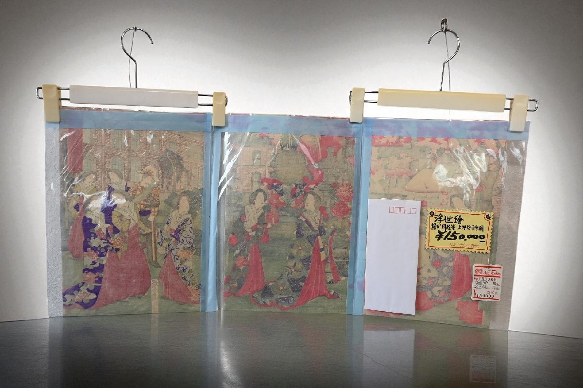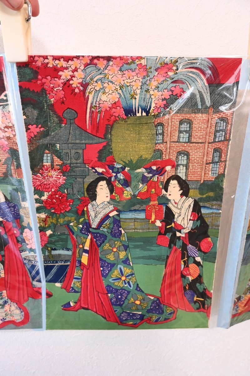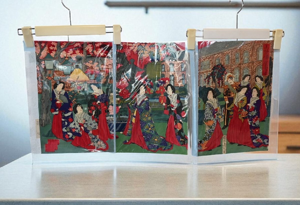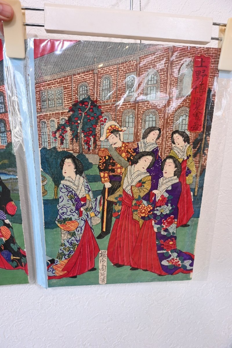○定価15万円 浮世絵 明治版画 【絵 師】楊洲周延「上野博覧会図」 3枚組セット 古道具のgplus広島 2509k