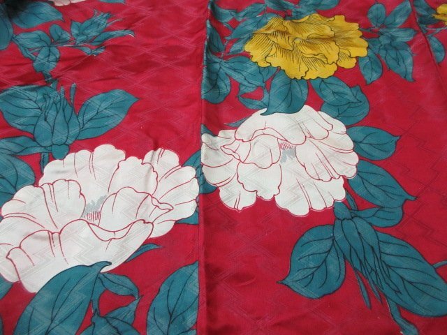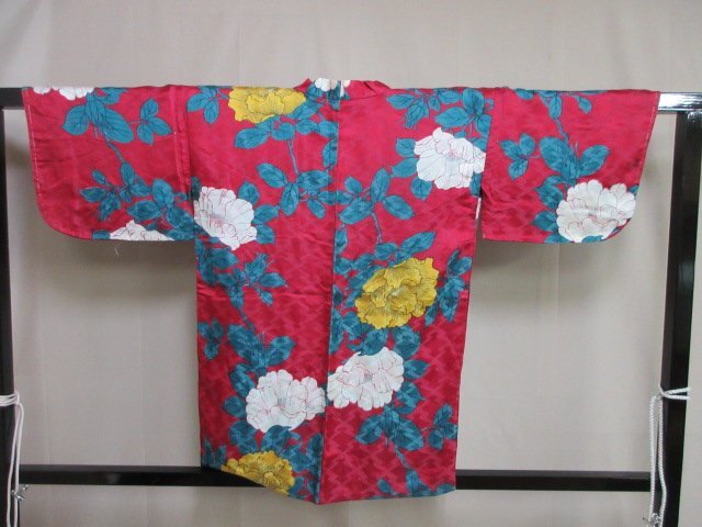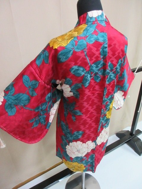 商品名 | 1円 良品 羽織 正絹 和装コート 縮緬 草花 牡丹 松皮菱 おしゃれ 高級 袷 身丈80cm 裄63cm【夢職】★ |