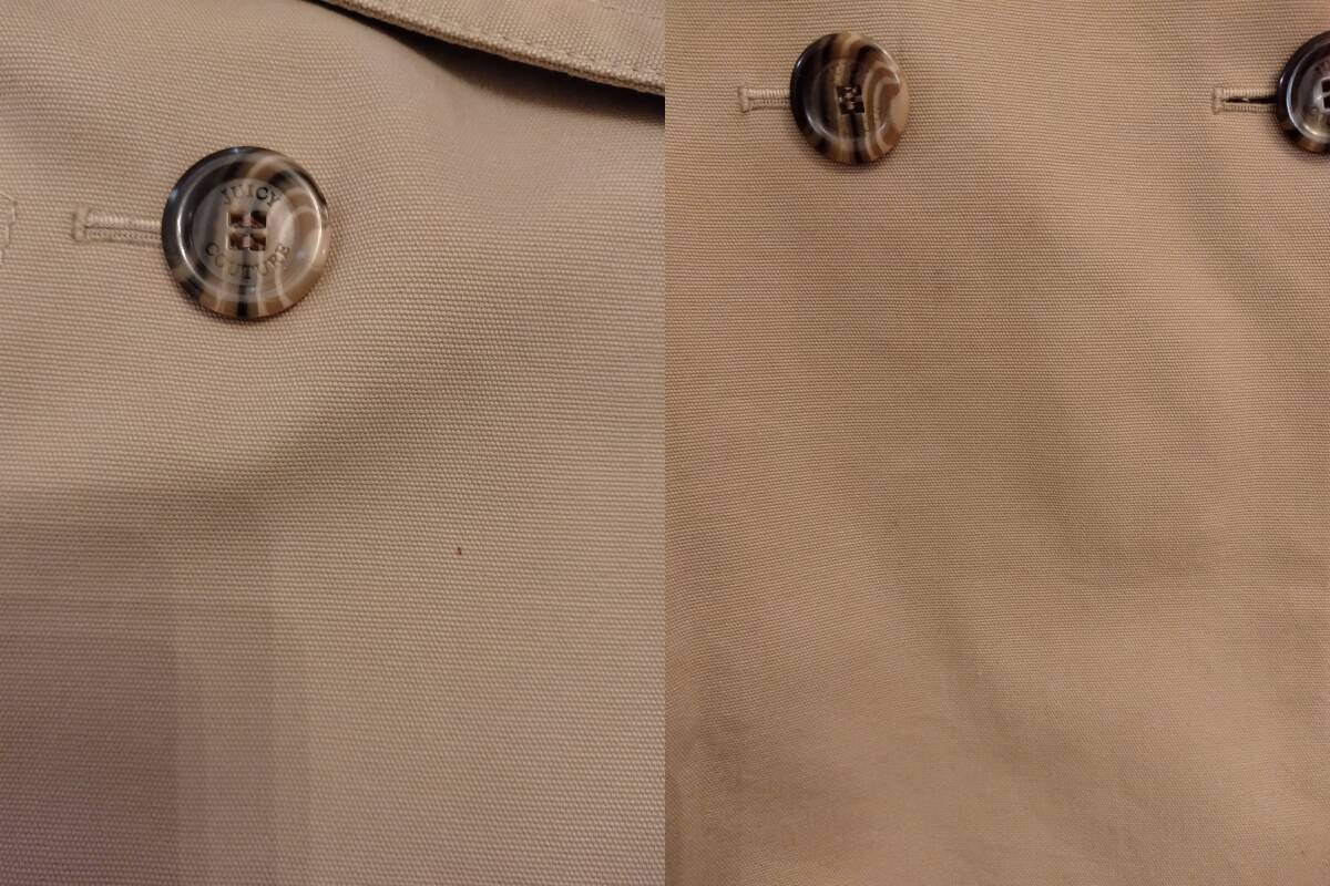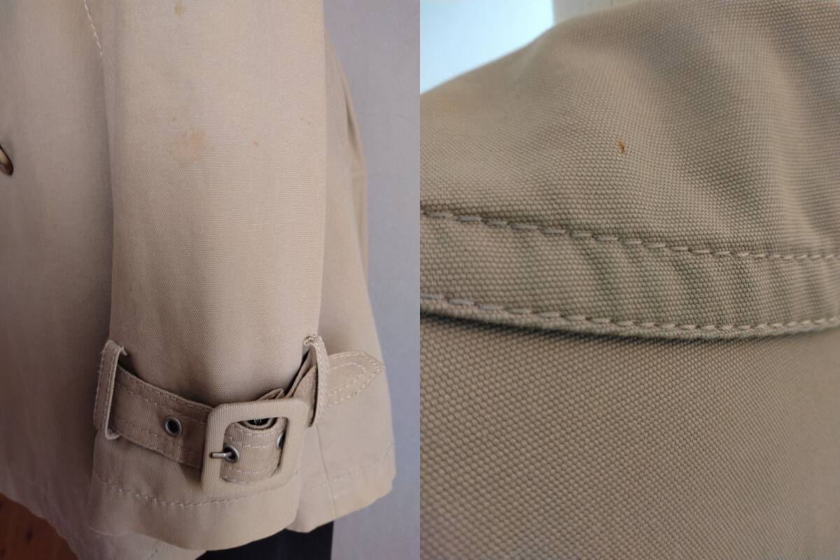 襟後ろに小さなシミ・左袖にシミ(画像10)前身に小さなシミ・前身一番下釦下にうすいシミ(画像8)袖口に擦れ(画像9)