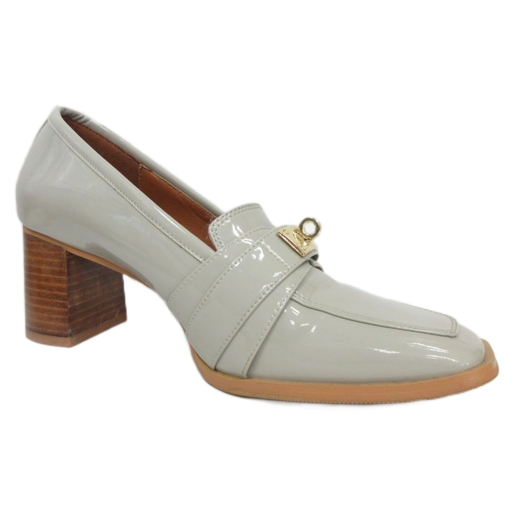 オウバニスター AU BANNISTER 【晴雨兼用】ヒールアップローファー ターンロック ゴールド金具 撥水 ライトグレー 37 23.5cm