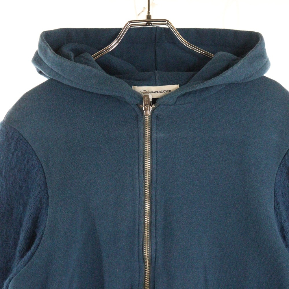 John UNDERCOVER ジョン アンダーカバー モヘア混ニット切替 変形デザイン ジップアップパーカー ブルー JUL4806