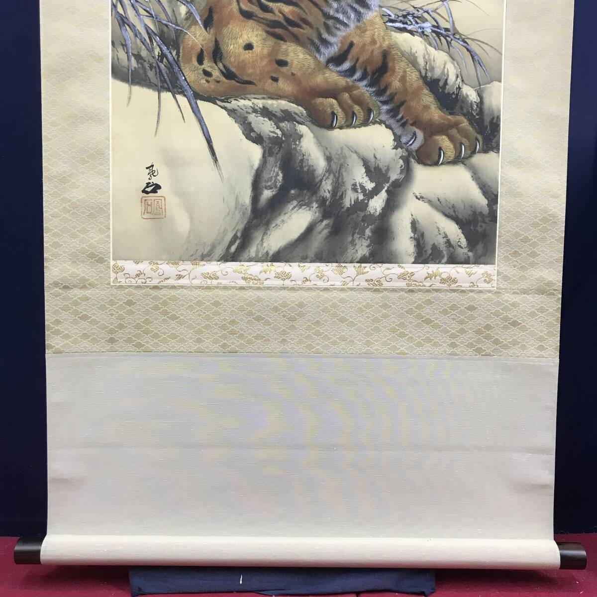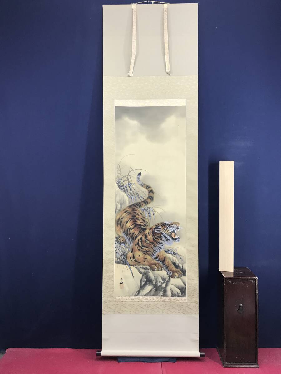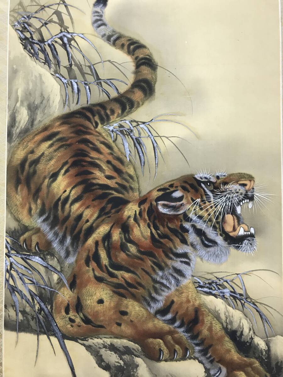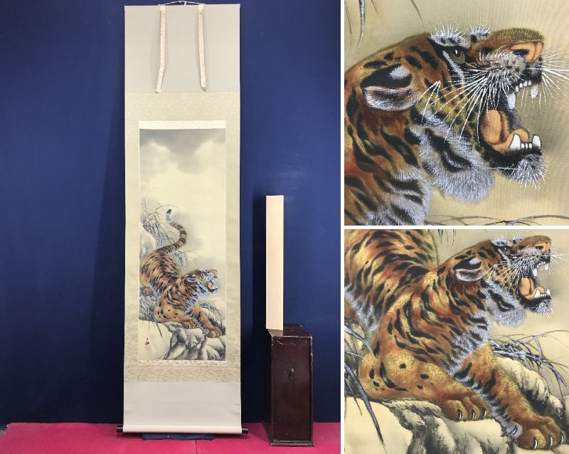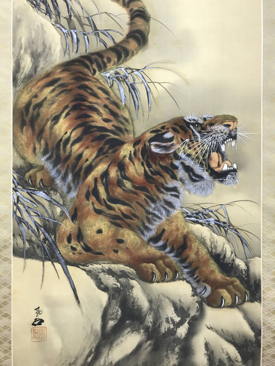 真作/鳳石/ホウセキ/猛虎図/トラ図/花鳥図/掛軸☆宝船☆AK-52
