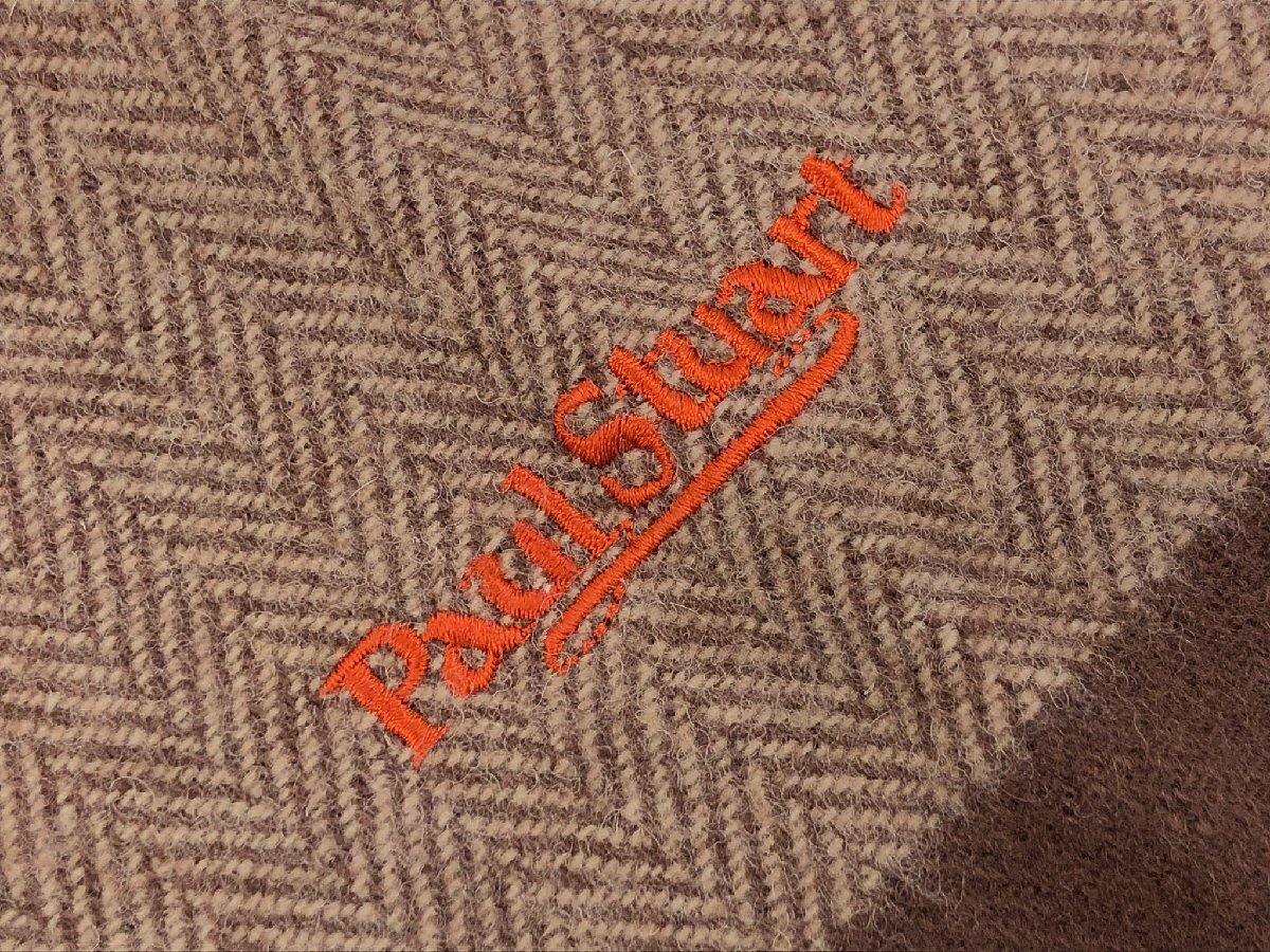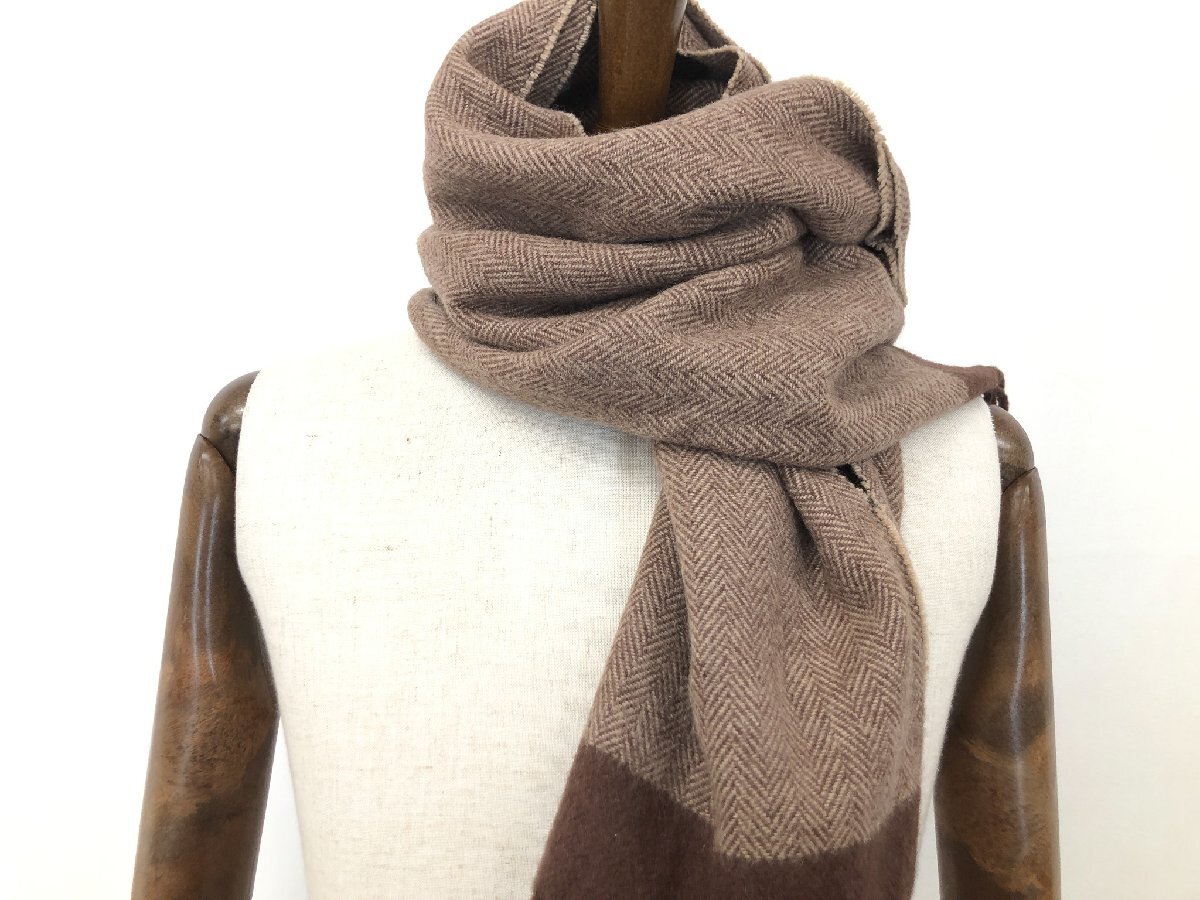 極美品【Paul Stuart ポールスチュアート】 ショール風 ヘリンボーン柄マフラー ストール (メンズ) ブラウン×ベージュ系 ◇33ME7792◇
