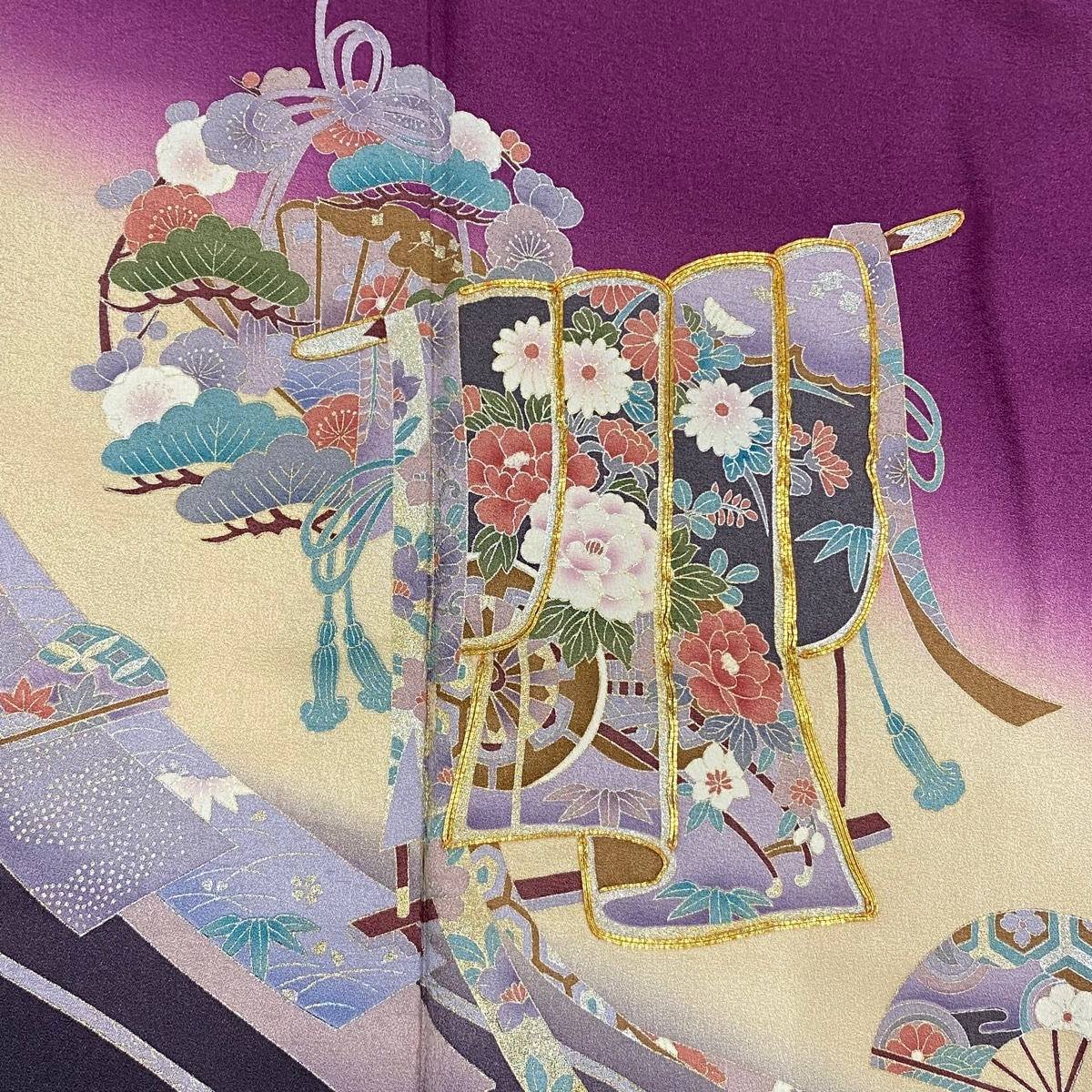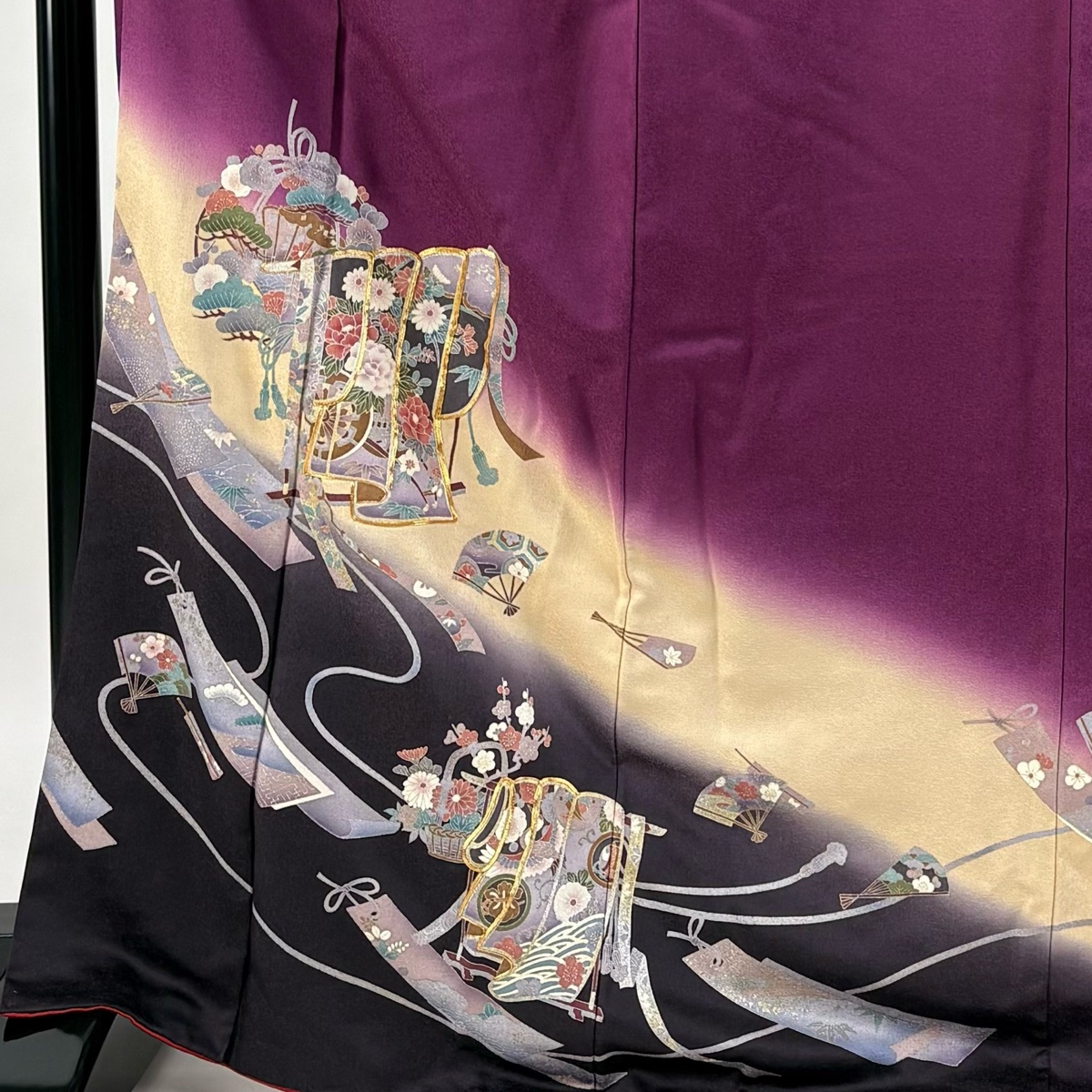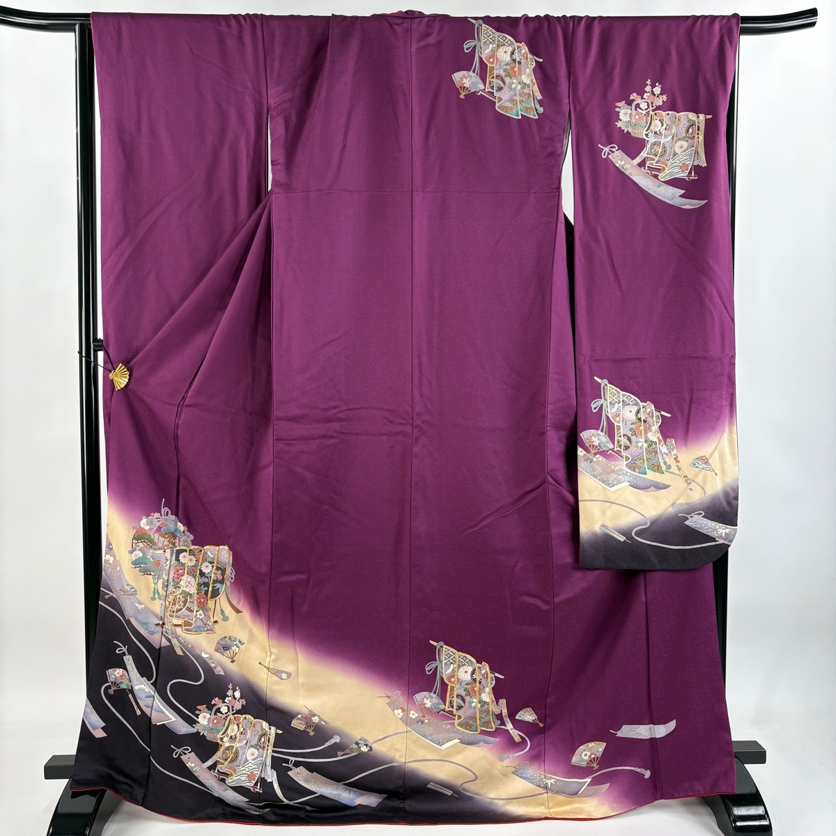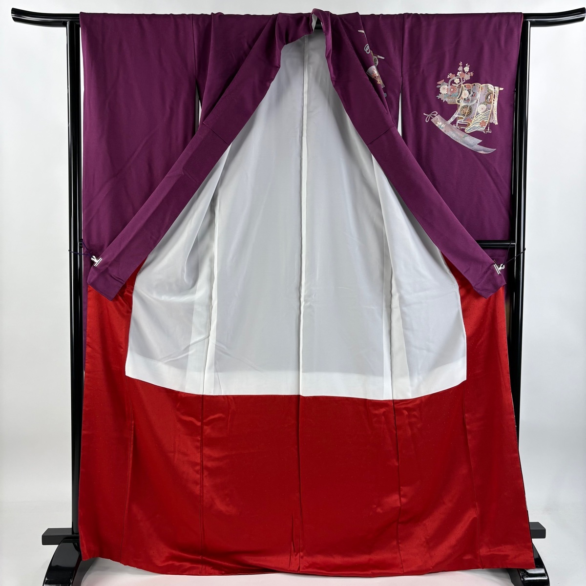 振袖 秀品 誰が袖 短冊 金糸 金銀彩 赤紫 袷 身丈168 裄丈67 M 正絹 【中古】 |