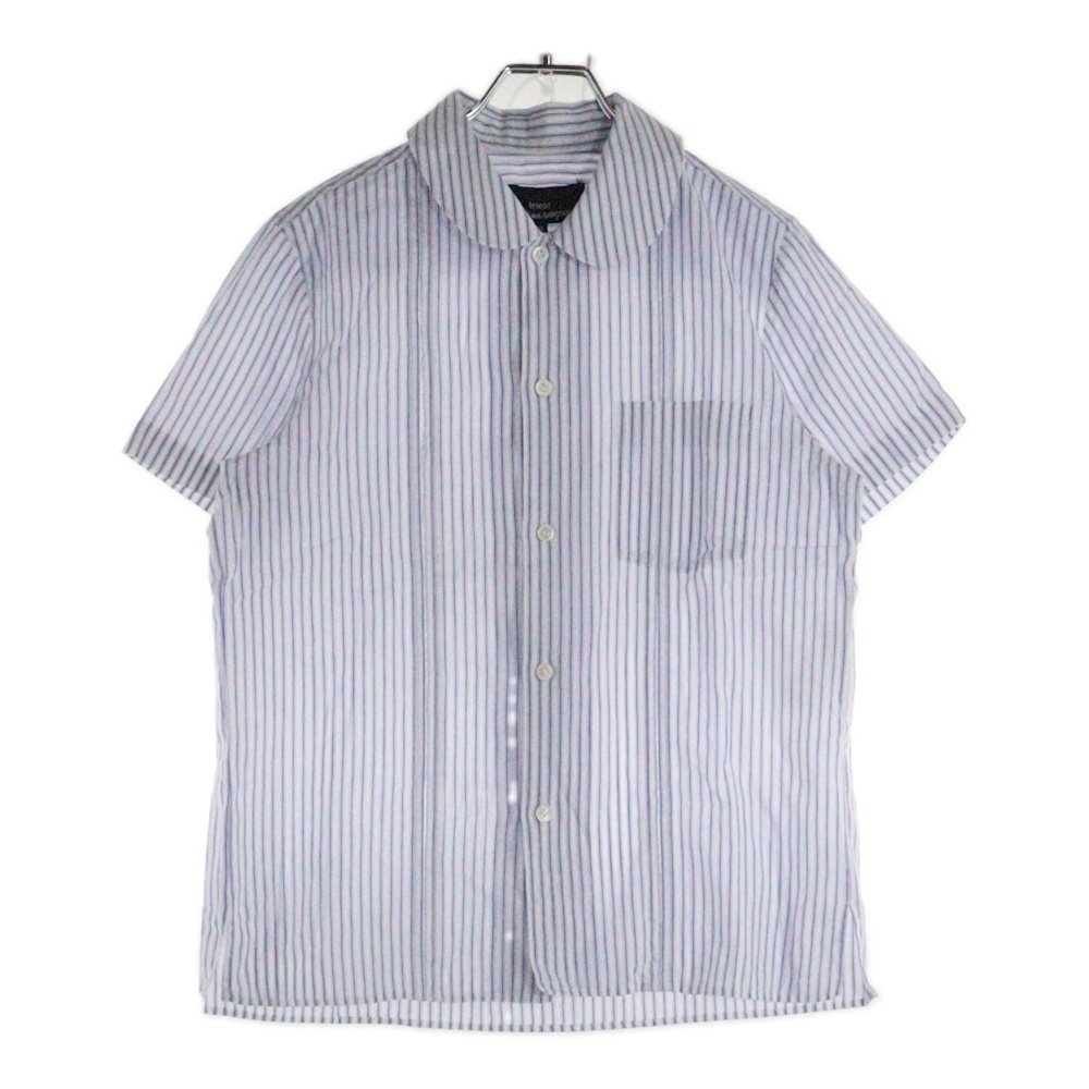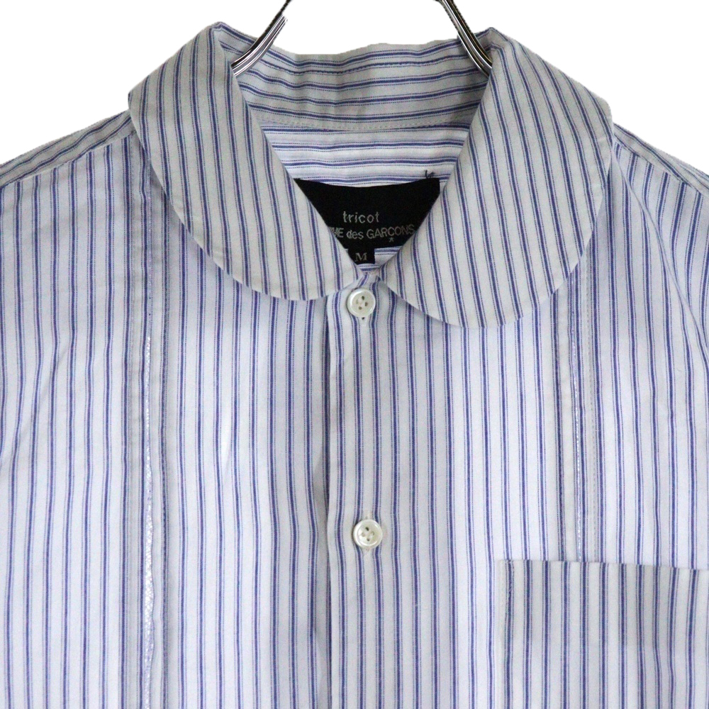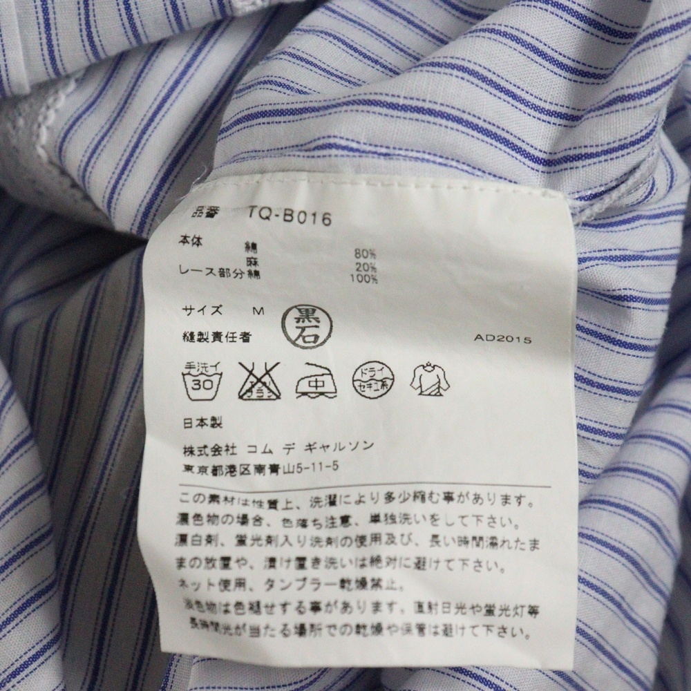 トリコ コム デ ギャルソン 16SS AD2015 レースライン 丸襟 ストライプコットンブラウス 半袖シャツ ブルー/ホワイト レディース TQ-B016