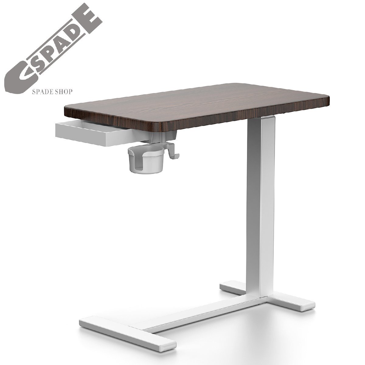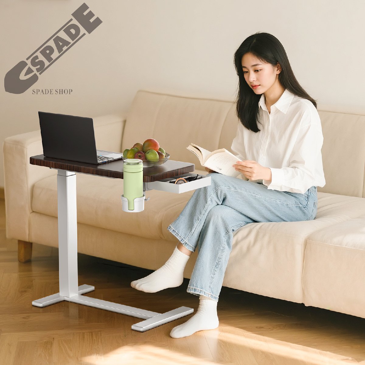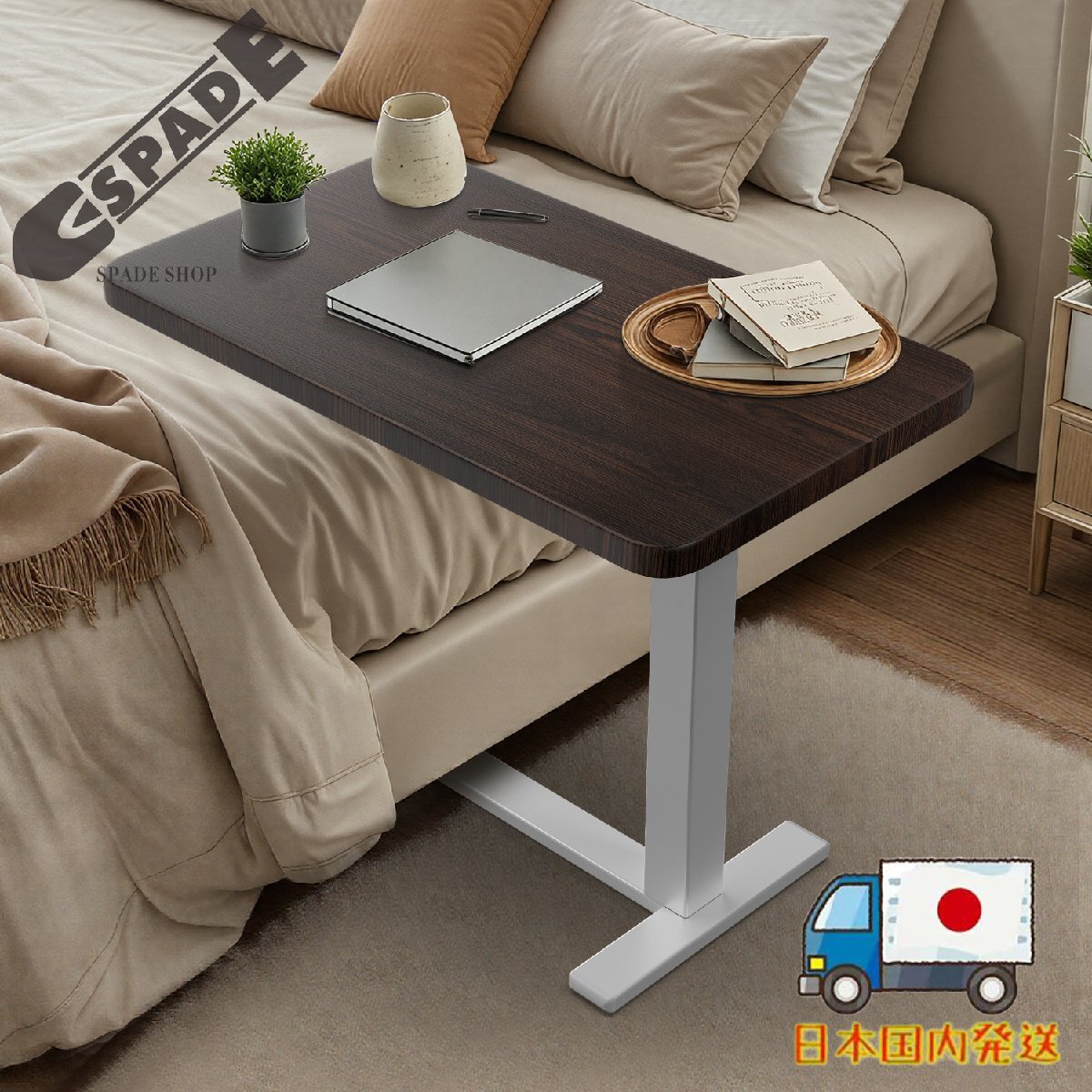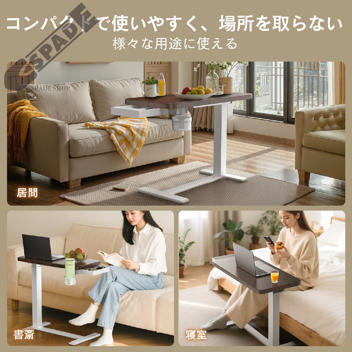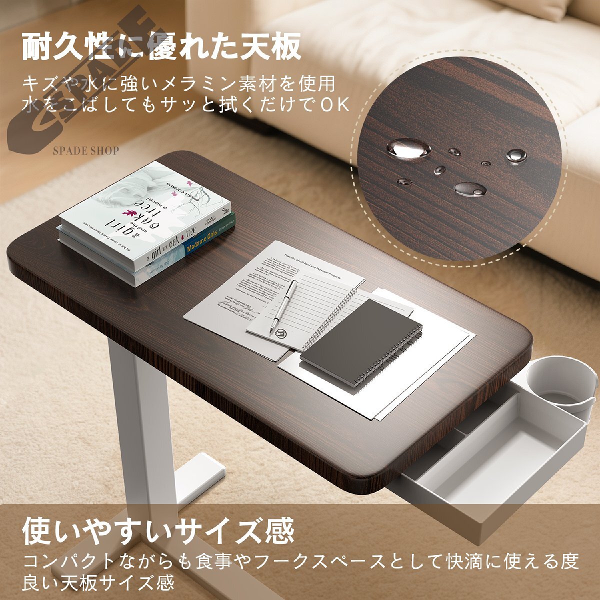 【国内発送】 サイドテーブル昇降式 ガス圧昇降ベッドテーブル PCテーブル 介護テーブル 引き出し付き カップホルダー付き キャスター付き