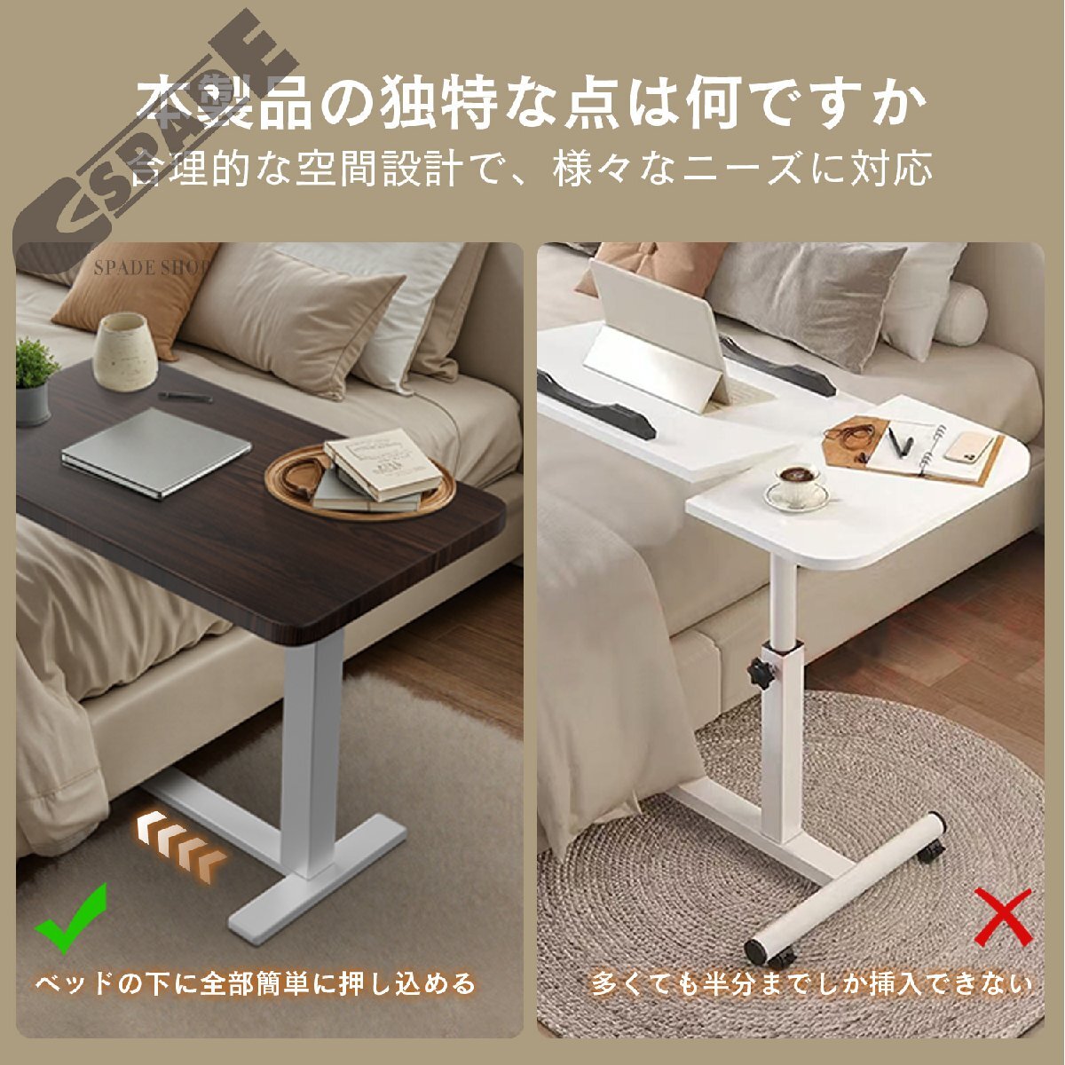 • 【ベッドサイドにぴったり、安定感抜群!】設計により、テーブルがベッドの縁にぴったりとフィットし、ぐらつきません。カップの溝が付き、飲み物を置くと安定します。深夜の残業、動画鑑賞、朝食も安心して楽しめます。ハンドルと静音万向輪で移動もスムーズ。床を傷つけず、隣の邪魔にもなりません。