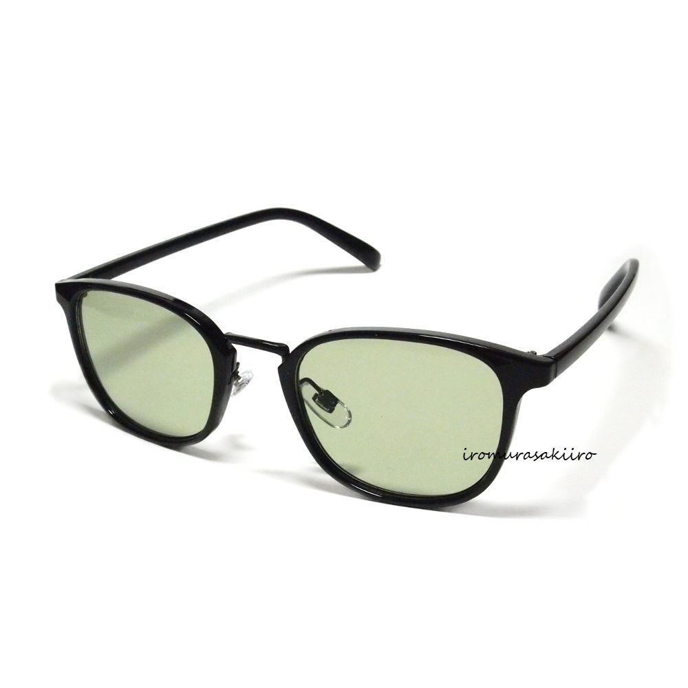 モスグリーンレンズ サングラス 薄い色 新品 / 緑 メンズ レディース 黒フレーム 目が透ける カラーレンズ 男性 紫外線カット UV 5044GR