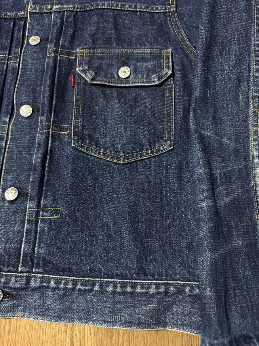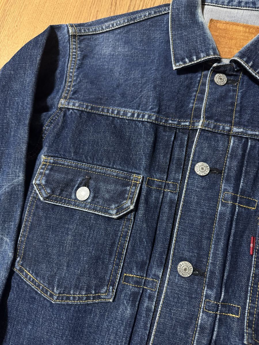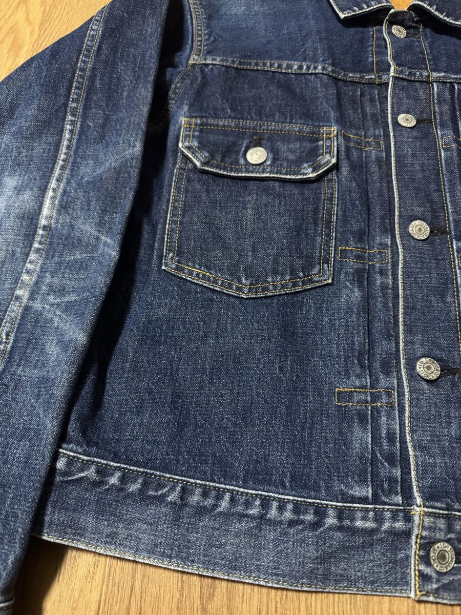 袖先微細なダメージあり。ボタン錆あり。前オーナーが洗ったのか、当方が保有している他の個体と比べると生地のザラ感が強いです。