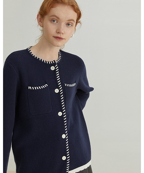 参考商品名:【Fano Studios】White stitch knit cardigan FQ21S110