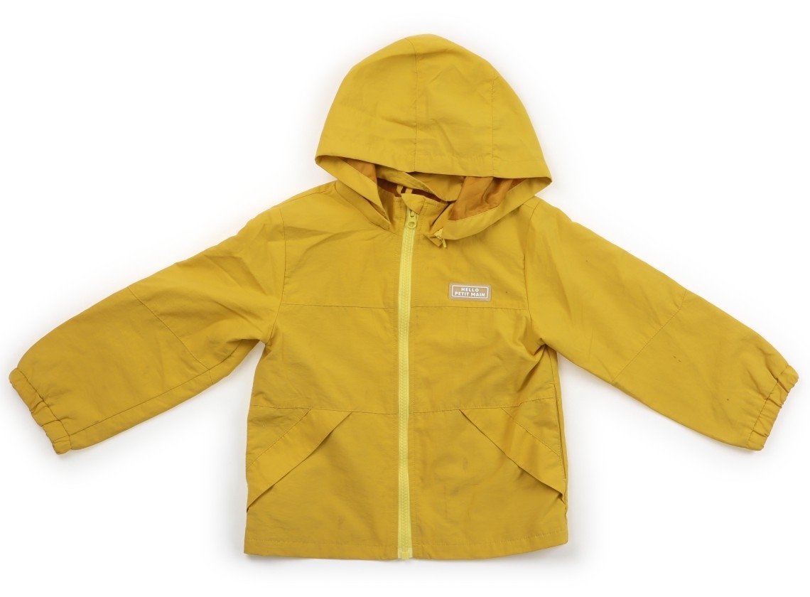 ナイロン素材で、裏地付き。フードの取り外しが可能です。袖口に黒ずみ・袖と胸元に濃茶シミ・お腹付近に黒いシミあり。
