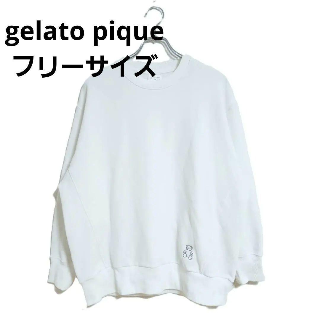 ジエラヴィアのクマ刺繍がポイントになったホワイトのスウェットトップスです