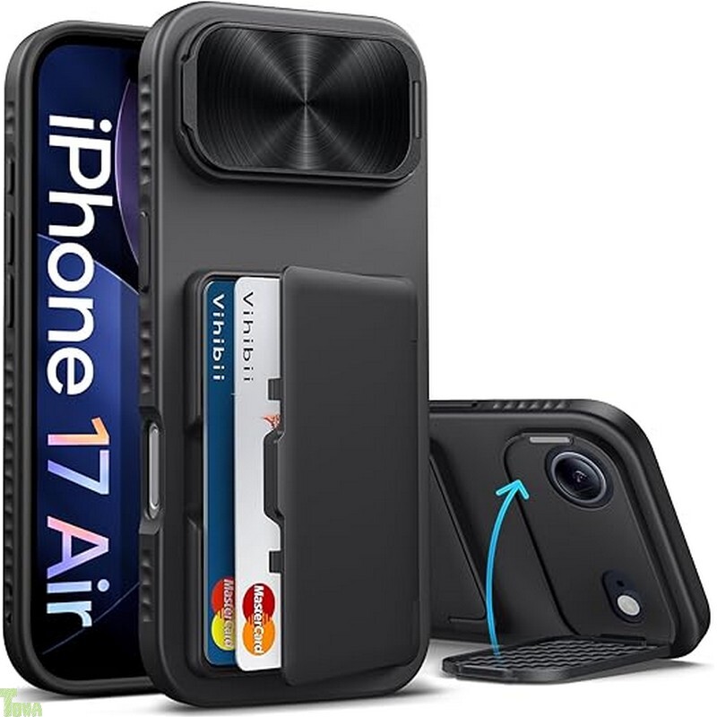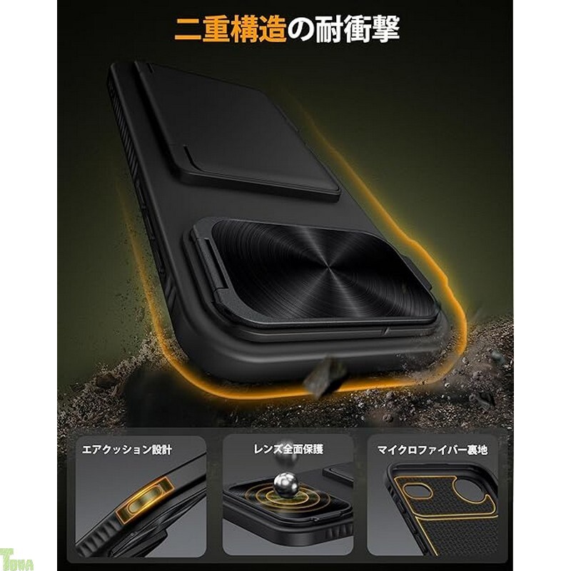ブラック 米軍MIL規格 カメラカバー ミラー ストラップホール アイフォン iPhone Air 保護 財布型 スタンド機能 カード収納 ケース カバー