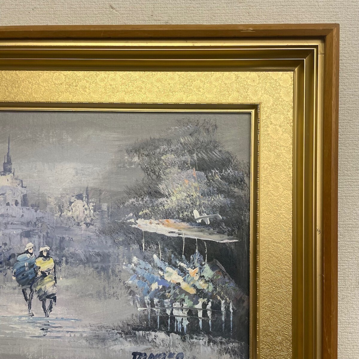 作者不詳 TANAKA『冬の街並み』 直筆サイン入り 8号 油絵 風景画 額装 縦約48cm×横約57cm