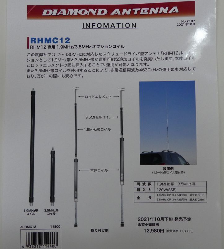 RHMC12 RHM12専用 1.9MHz/3.5MHzオプションコイルセット 新品即決 ![]() RHMC12:RHM12専用 1.9MHz/3.5MHzオプションコイルセットRoHS