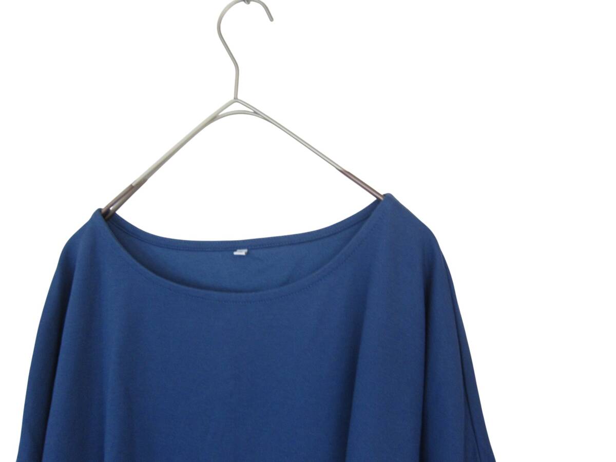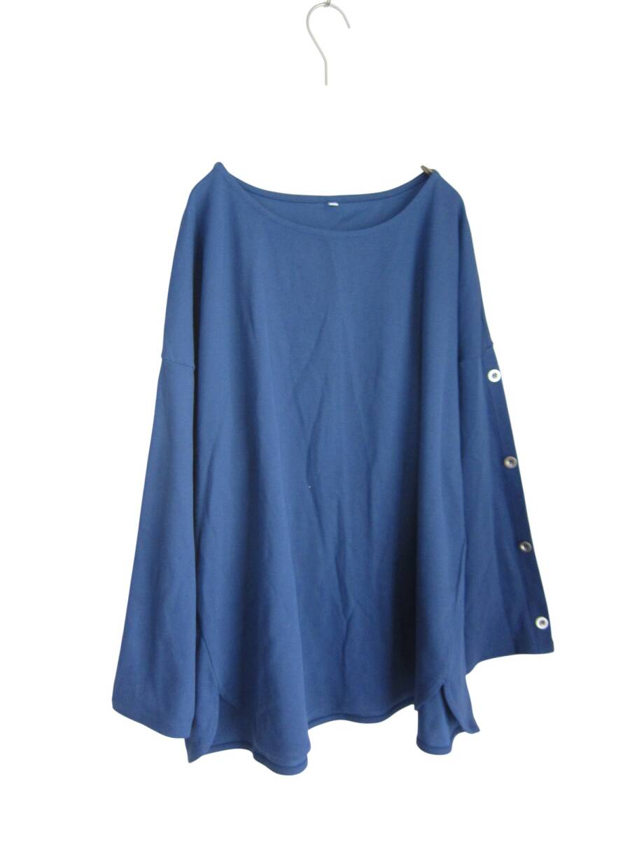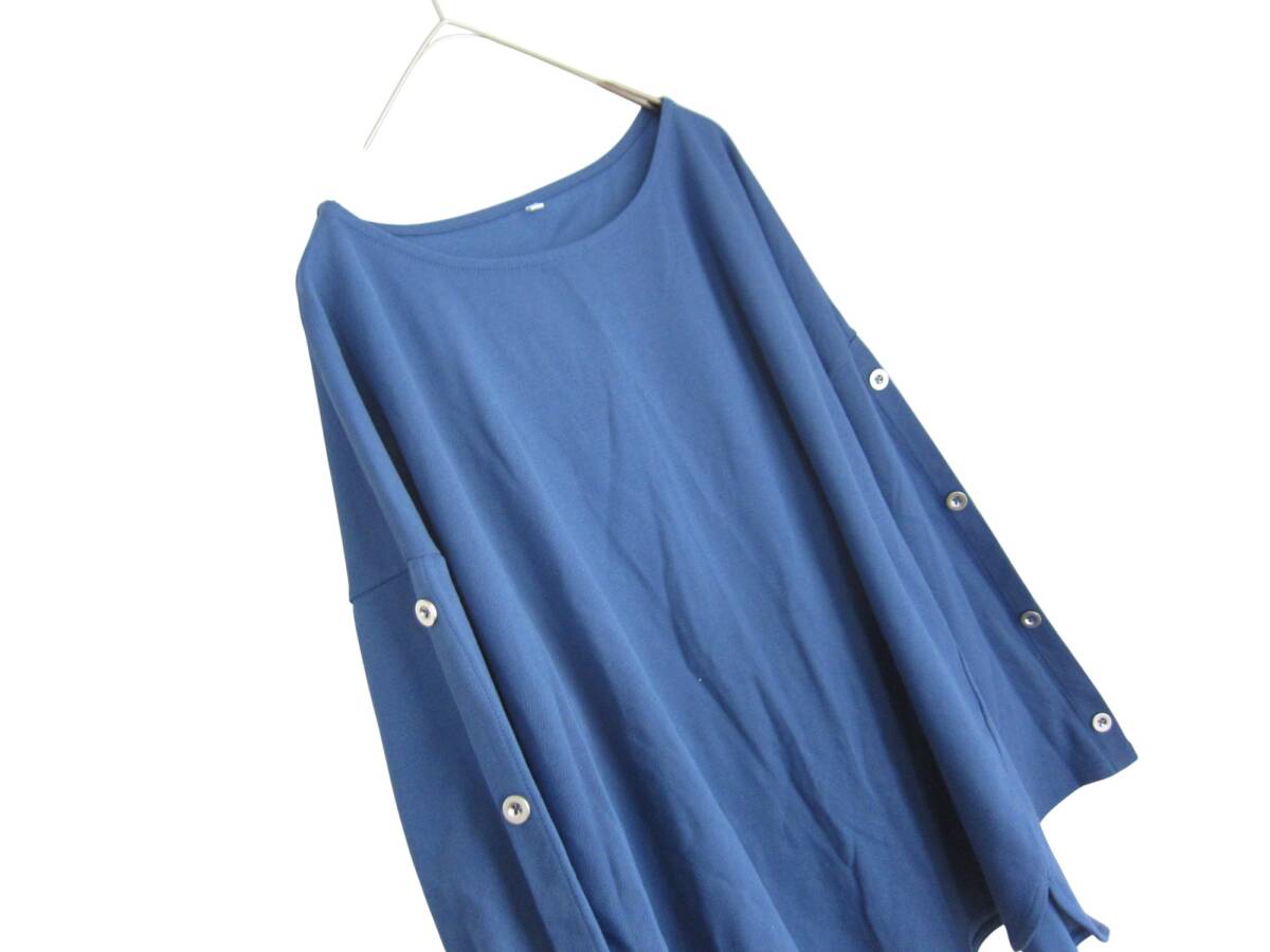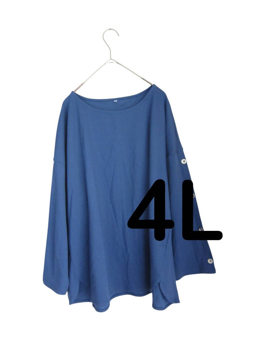 ★送料無料 W102 美品 【4L】 ~5L~着用可! ブルー 肩ボタン飾り 長袖 カットソー 大きいサイズ ゆうパケットプラス