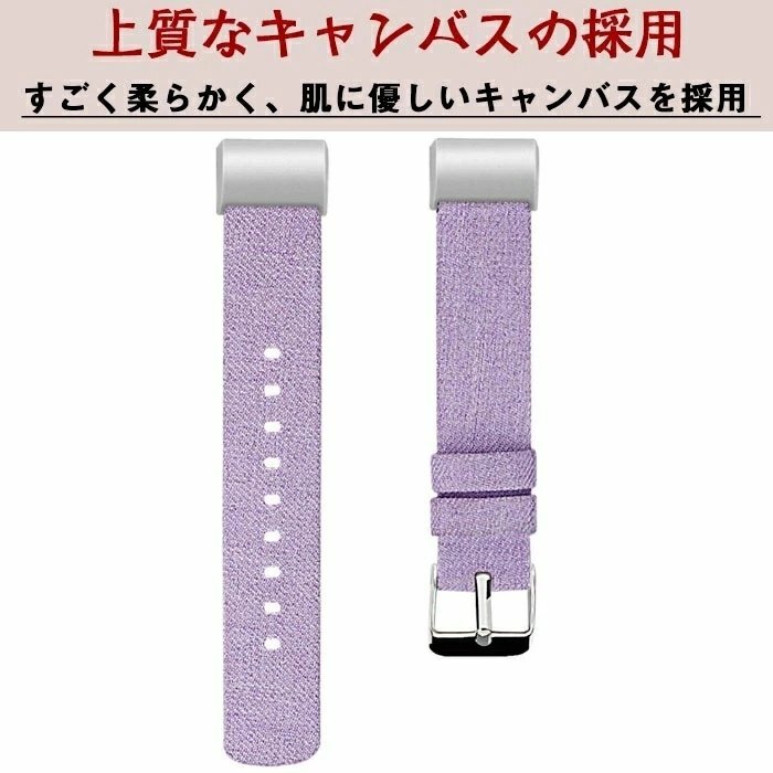 Fitbit Charge 2 対応 スポーツ バンド 豪華キャンバスベルト 男女兼用 メンズ レディース キャンバス バンド【パープル/サイズL】
