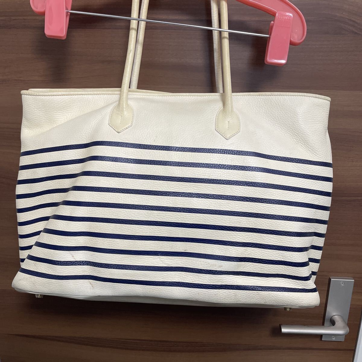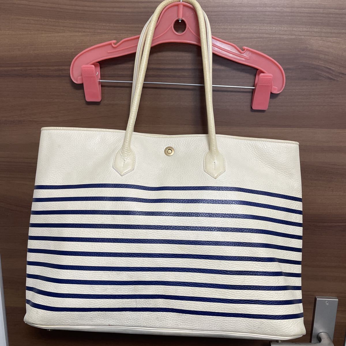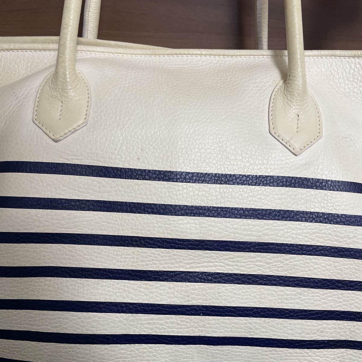 Cisei シセイ チセイ トートバッグ ボーダー レザー シボ革 イタリア made in Italy 本革 ホワイト 白 きなり ビジネス カジュアル BEAMS