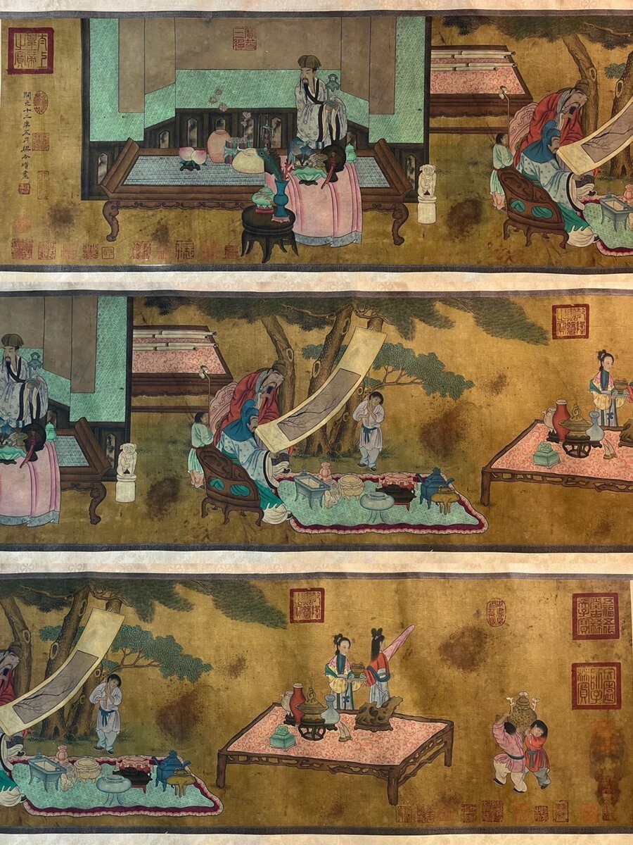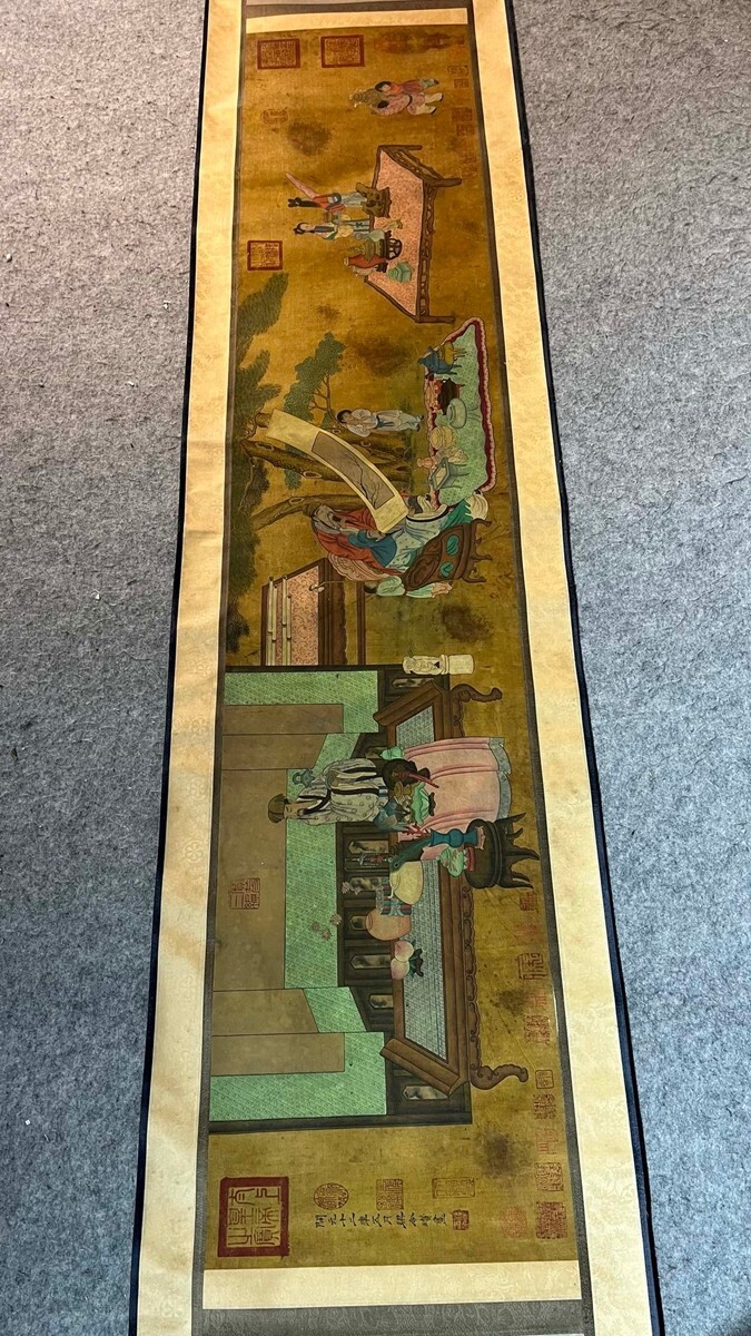 中国書画「唐 梁令サン 人物図長巻」肉筆絹本 掛け軸 墨寶妙品 書画横軸 巻き物 古美術 旧蔵出