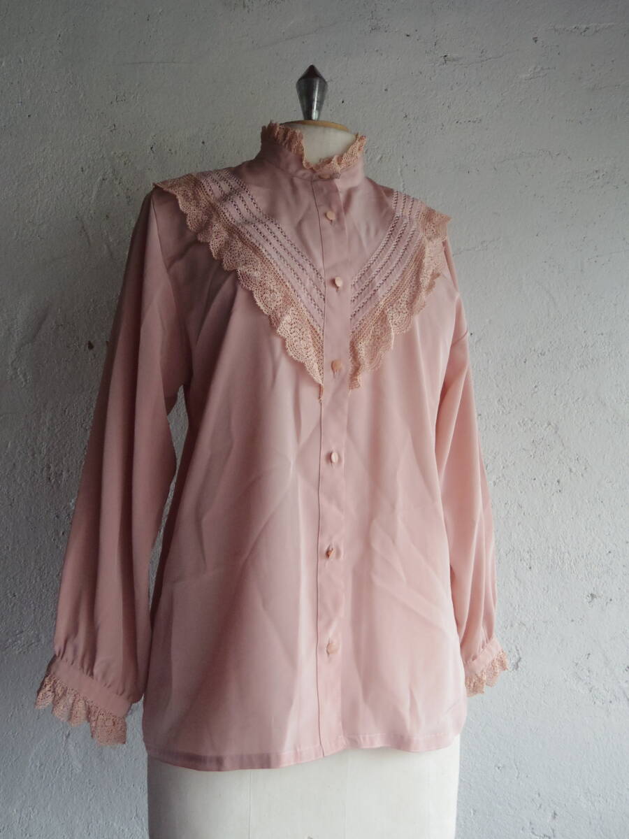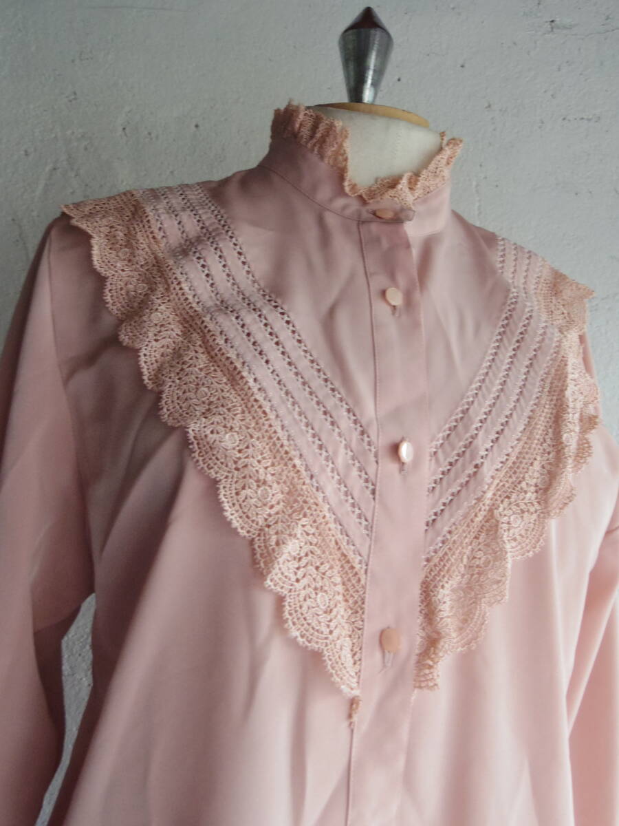 古着♪レトロVintageピンクレースブラウス♪ 昭和レトロブラウス70s60s70年代60年代 昭和レトロヨーロッパモダン レース袖 ブラウス