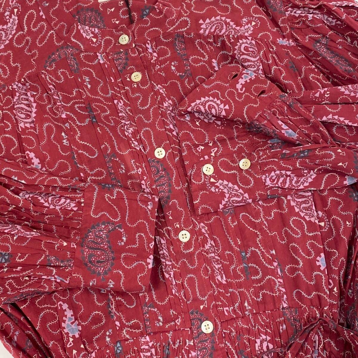 | スタッフ商品コメント | イザベルマラン エトワールの「ROBE ARIANA」長袖ワンピース。深みのあるレッドを基調に、ペイズリー柄があしらわれた華やかでエスニックな雰囲気の一着です。軽やかなコットン素材で通気性が良く、ゆったりとした袖やギャザーウエストが女性らしいラインを演出。前開きのボタンディテールもデザイン性と実用性を兼ねています。デイリーコーデはもちろん、旅行やリゾートシーンにも映えるアイテムです。 |