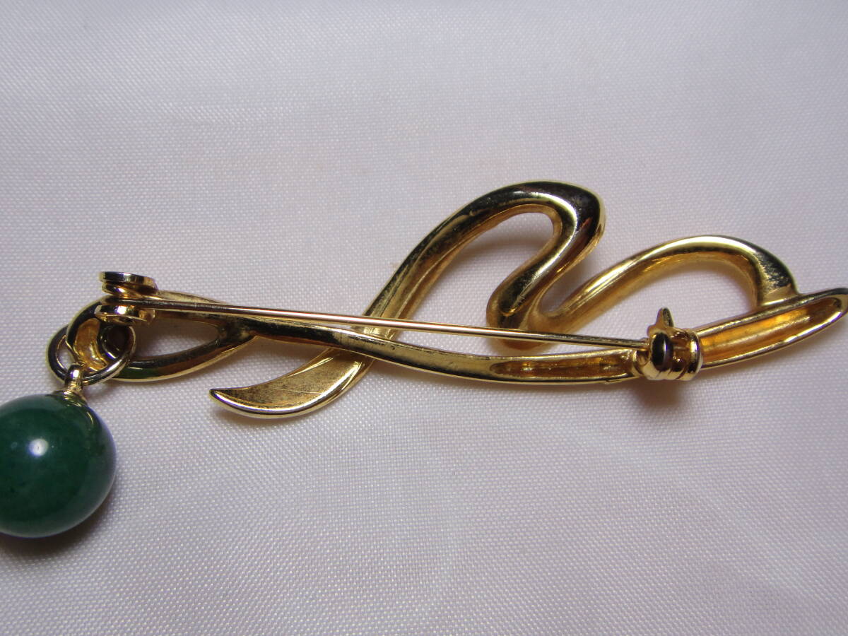 天然石 アベンチュリン ブローチ 揺れるデザイン ゆらゆら 昭和レトロ ヴィンテージ D616