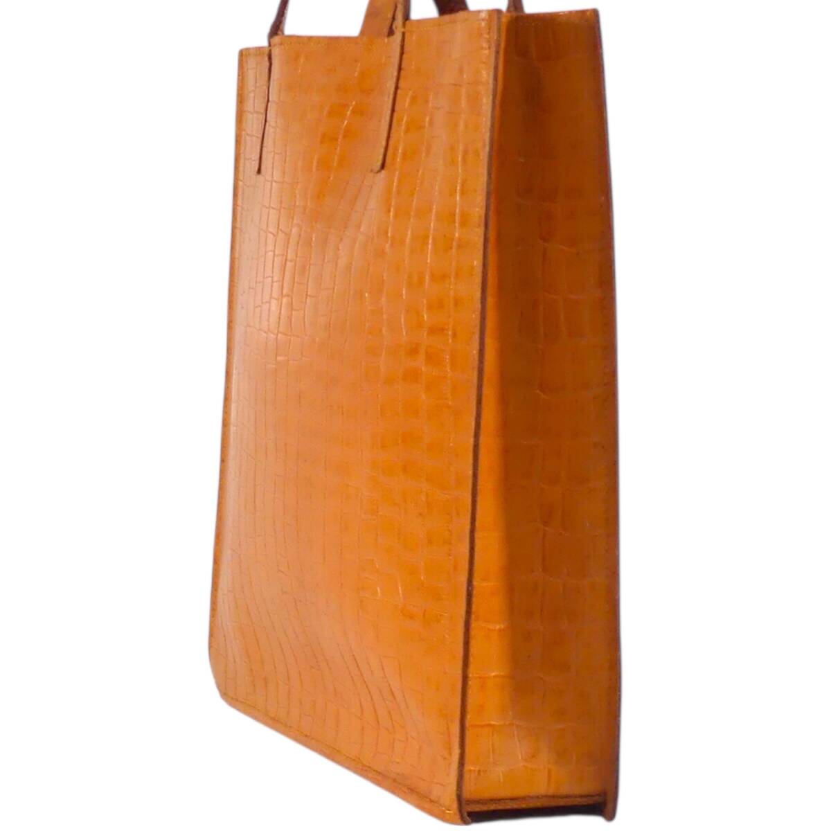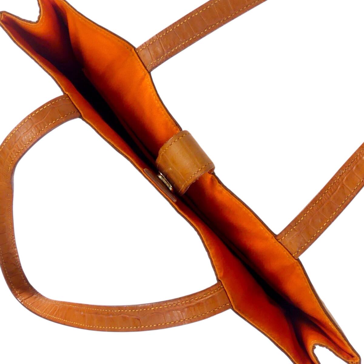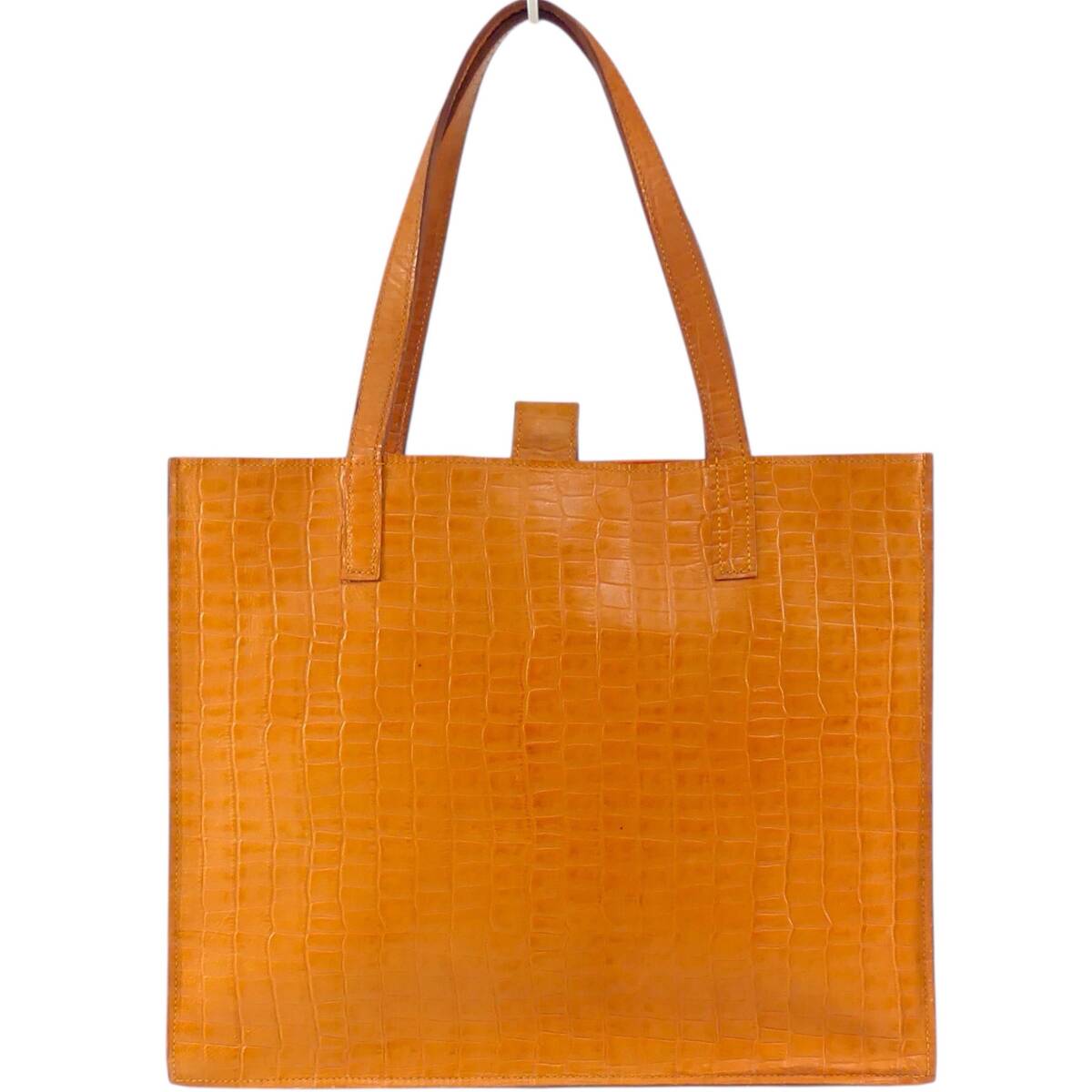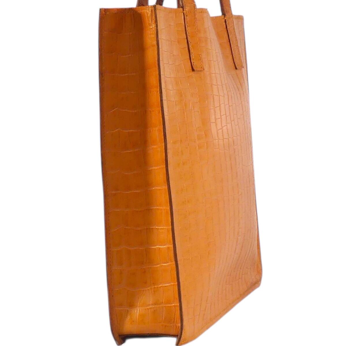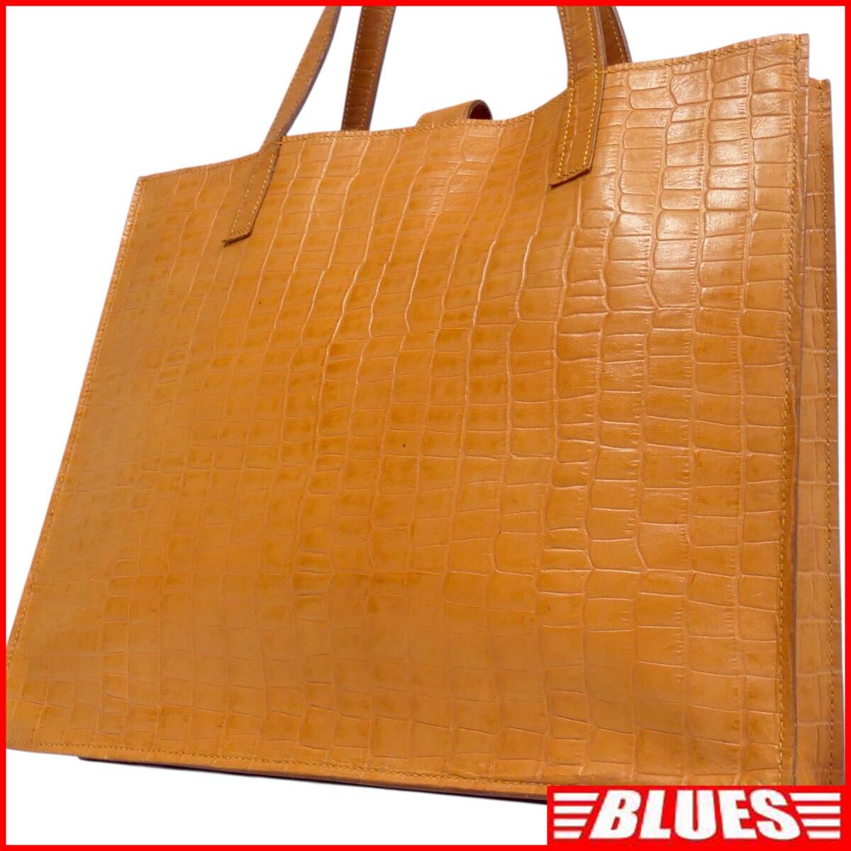 即決★N.B.★ トートバッグ クロコ型押し キャメル オレンジ 本革 オールレザー ハンドバッグ 本皮 旅行 カバン 出張 鞄