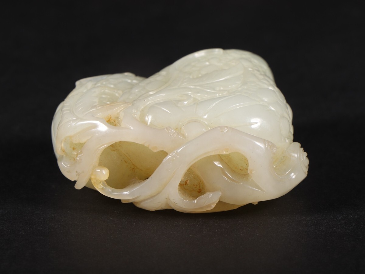 「時代物 和田玉 子料彫り 多子多福 瓜果」極細工 擺件 中国古賞物 古美術 旧蔵出