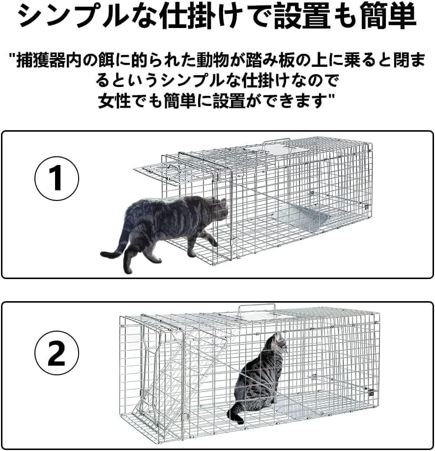 タヌキにぴったり Mサイズ H66cm×D23cm×H26cm 畑や庭に設置し、大切に育てた農作物や園芸植物などを動物から守ります。 ねずみやタヌキ、野良猫も捕獲できます。 また、ペットが迷子になった時の保護する道具としても可能。 餌に釣られた動物がプレートを踏めば内部に閉じ込められます。 使わない時はコンパクトに 使わない時は折りたたんで コンパクトになるので 収納場所にも困りません。 薬物や毒物は不使用 女性でも簡単に組み立てられる折りたたみ式 動物愛護法や鳥獣の保護及び管理並びに狩猟の適正化に関する法律 (※鳥獣保護ノ狩猟ニ関スル法律)に準じてお使い下さい。 〔商品詳細〕 本体サイズ:約H66cm×D23cm×H26cm 折りたたみ時:約H77cm×D23cm×H4.5cm 重量:約3kg 捕獲可能動物(参考):野良猫 アライグマ タヌキ ハクビシン イタチ ネズミ テン