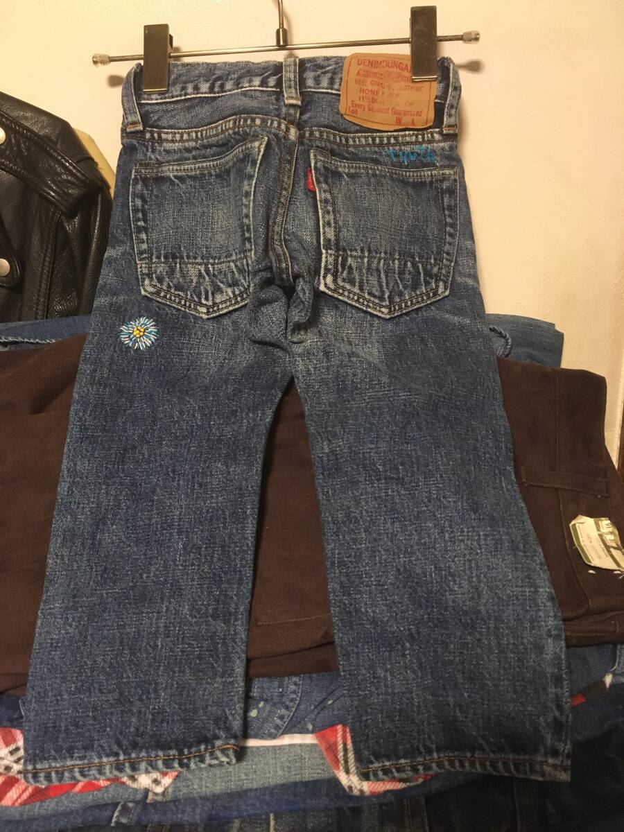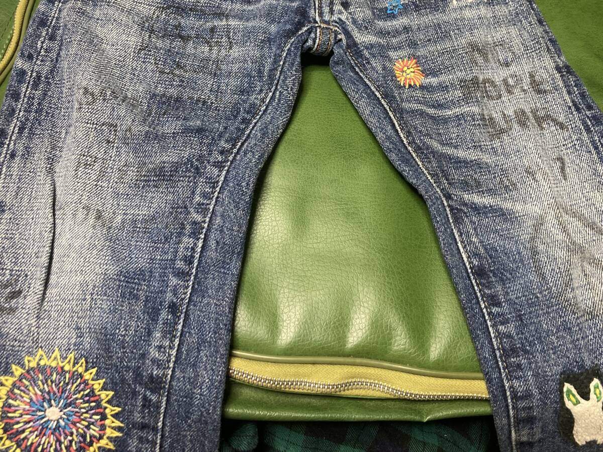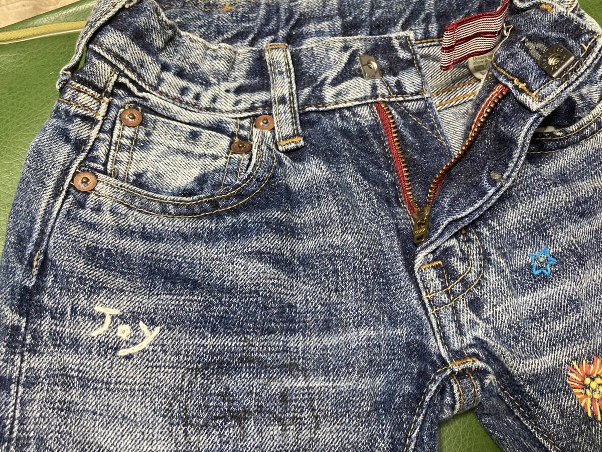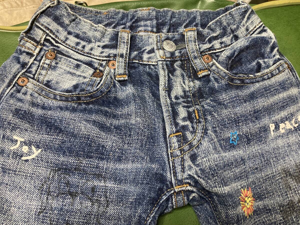 サイズは100(実寸ウエスト約46~54cm股下約38cmワタリ約16.5cm裾幅約13.5cm)です。