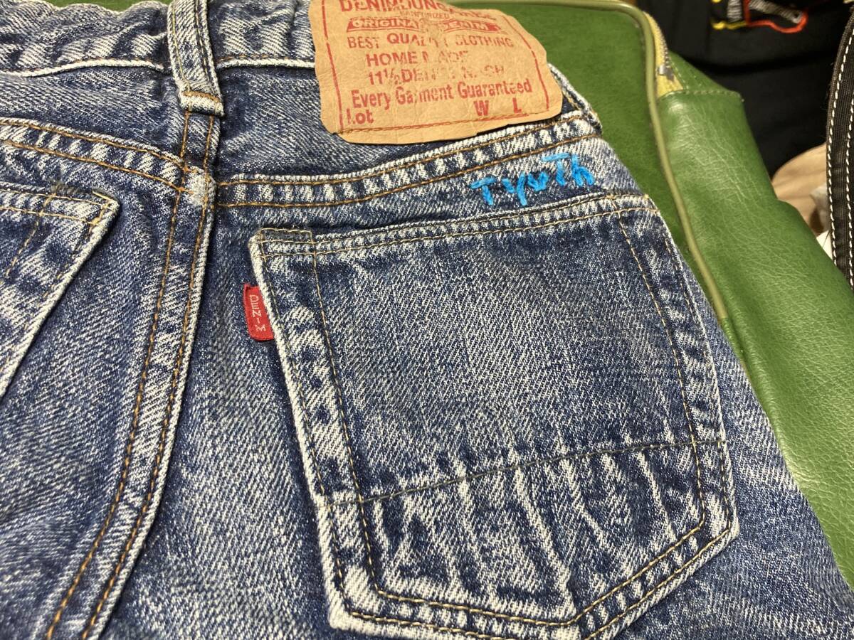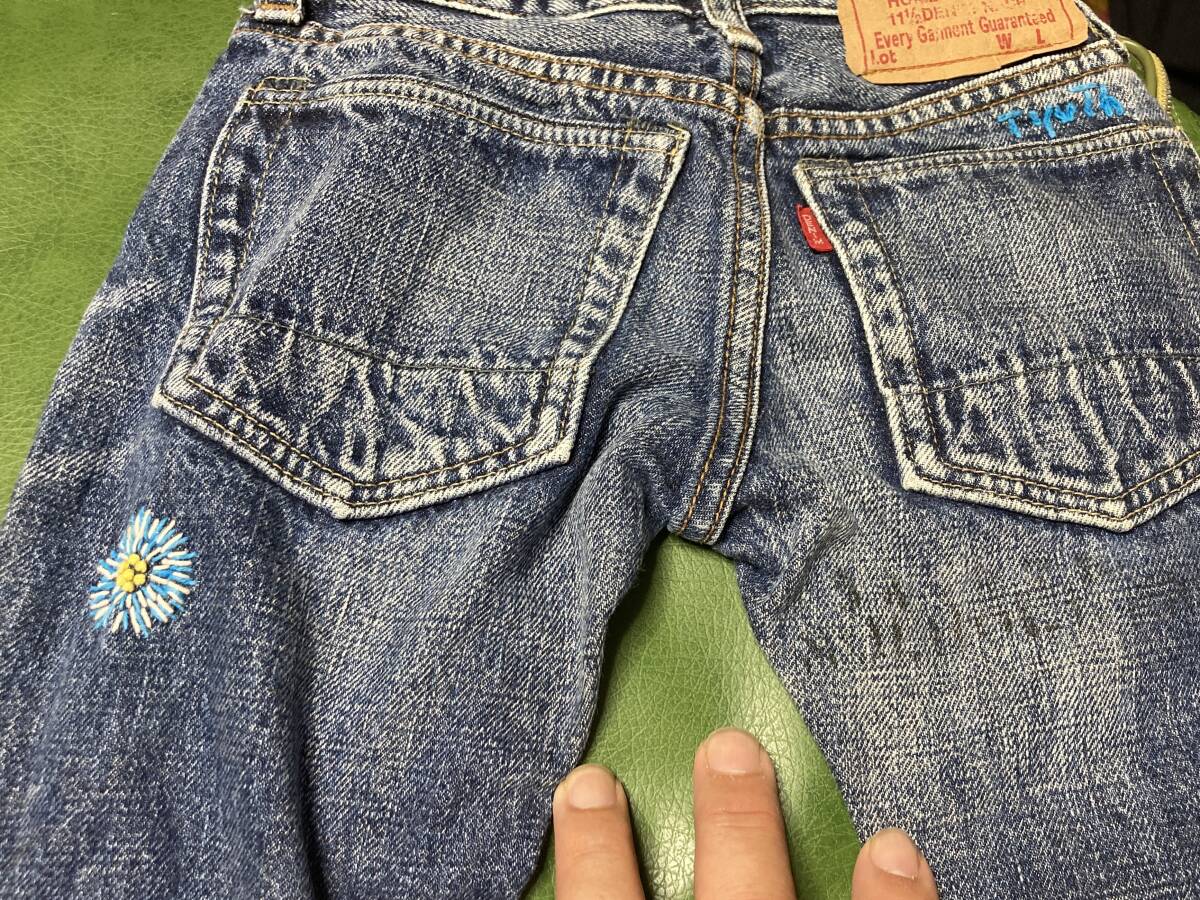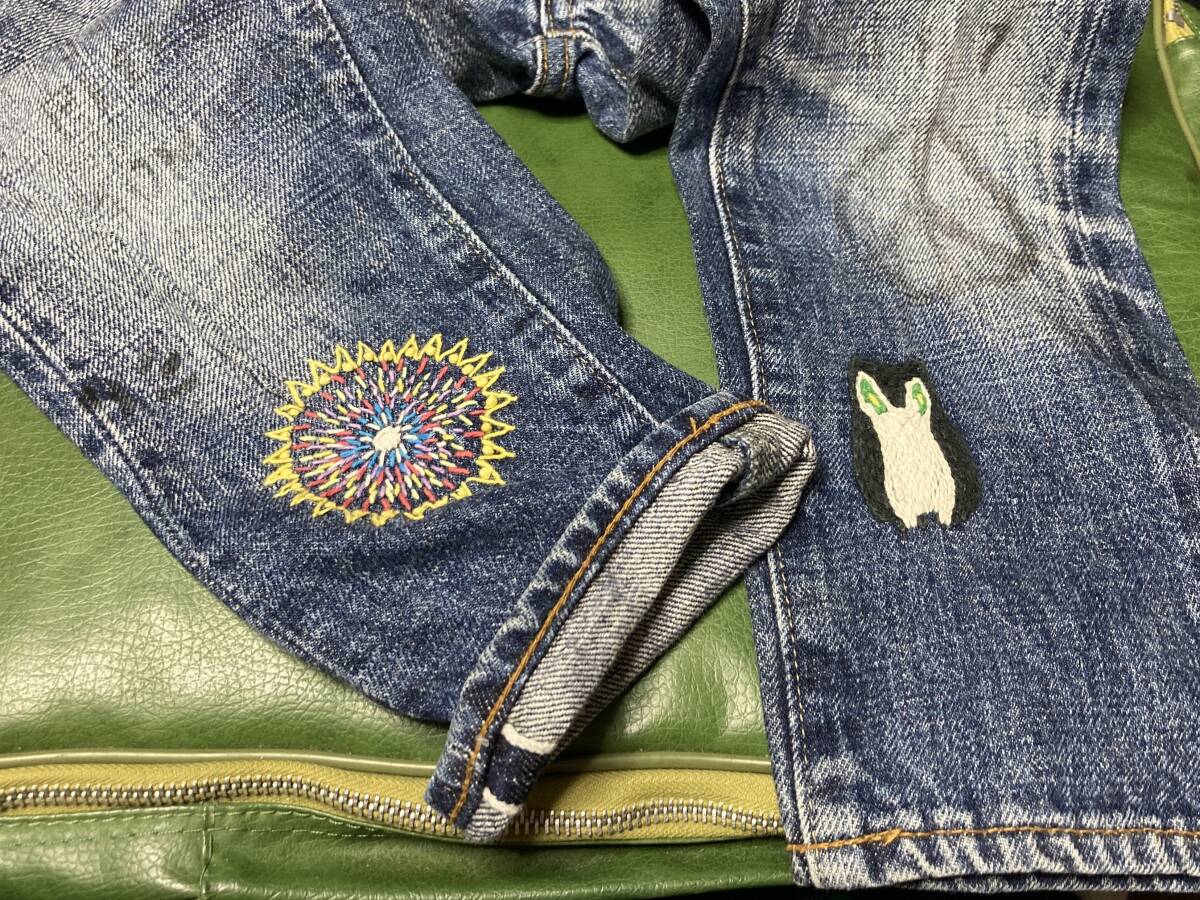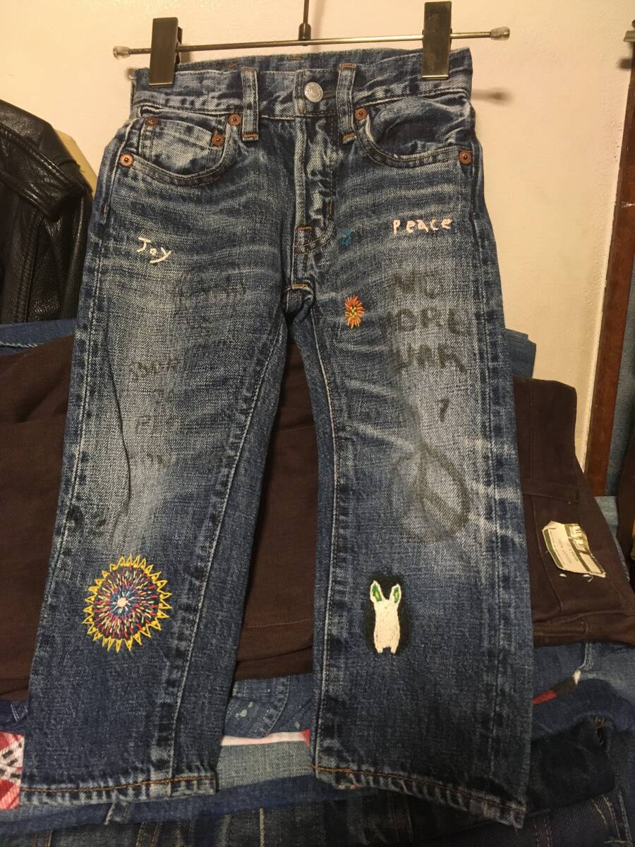 サイズは100(実寸ウエスト約46~54cm股下約38cmワタリ約16.5cm裾幅約13.5cm)です。