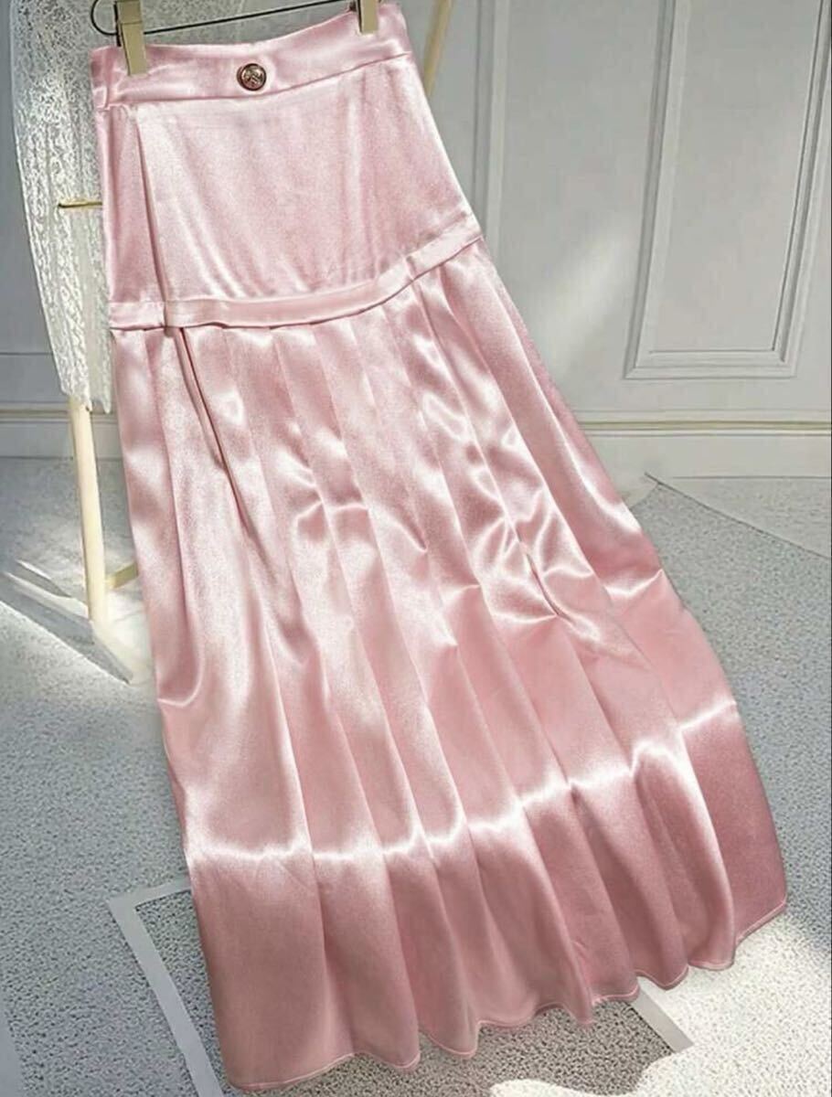 超光沢サテン ロングスカート ちゅるんちゅるん ウエストゴム XL (M) ピンク 清楚 女装 コスプレ 衣装 フェチ